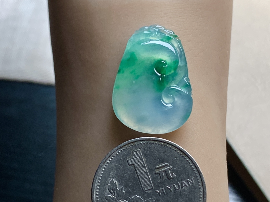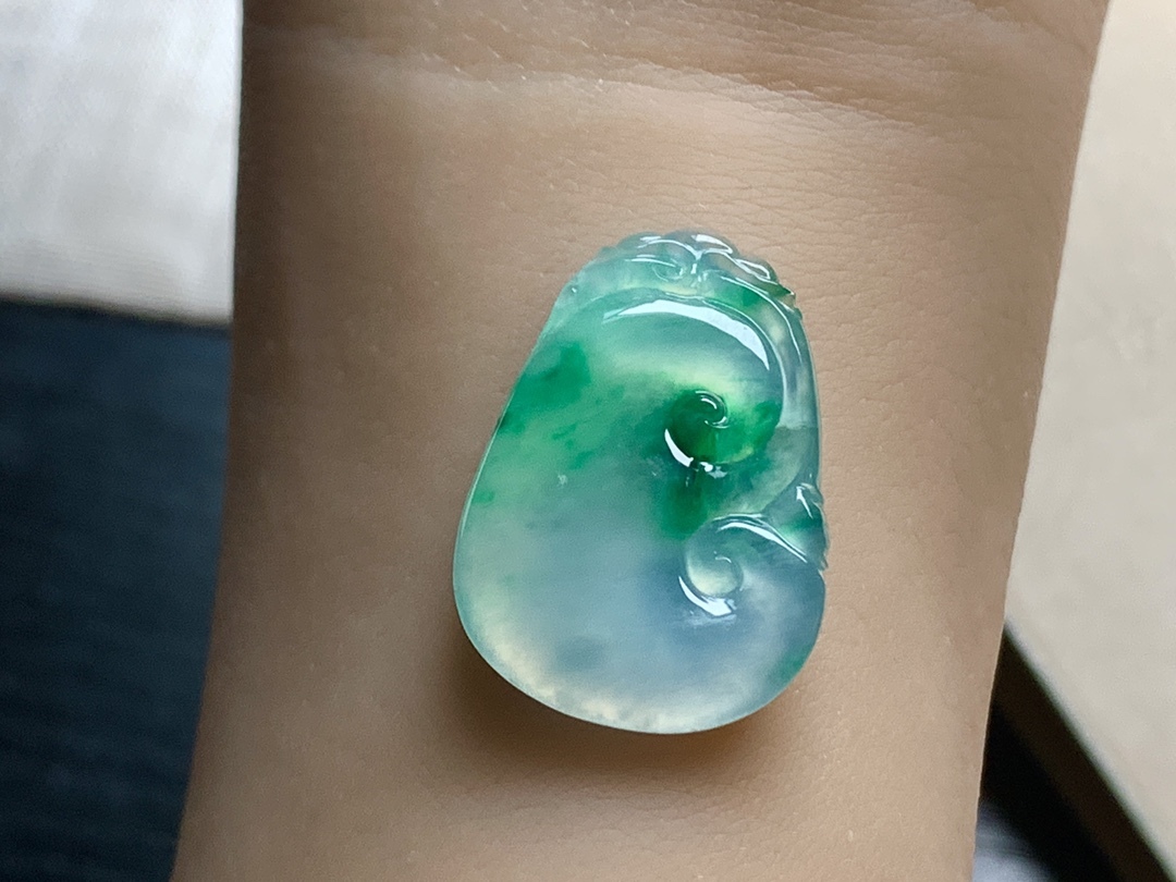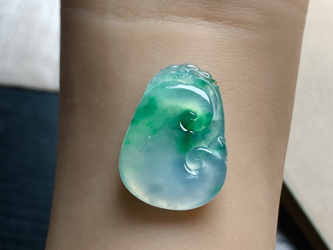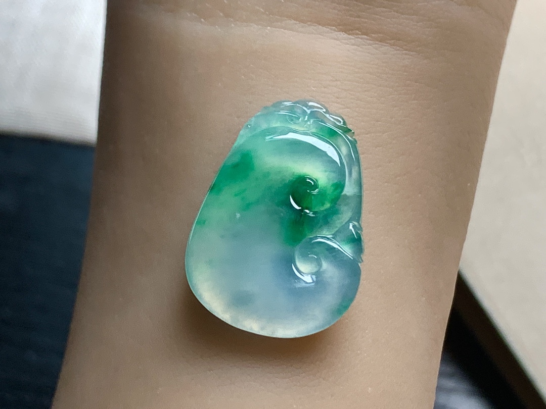 天然翡翠A玉,色澤青翠漂亮,靈動無比,完美。