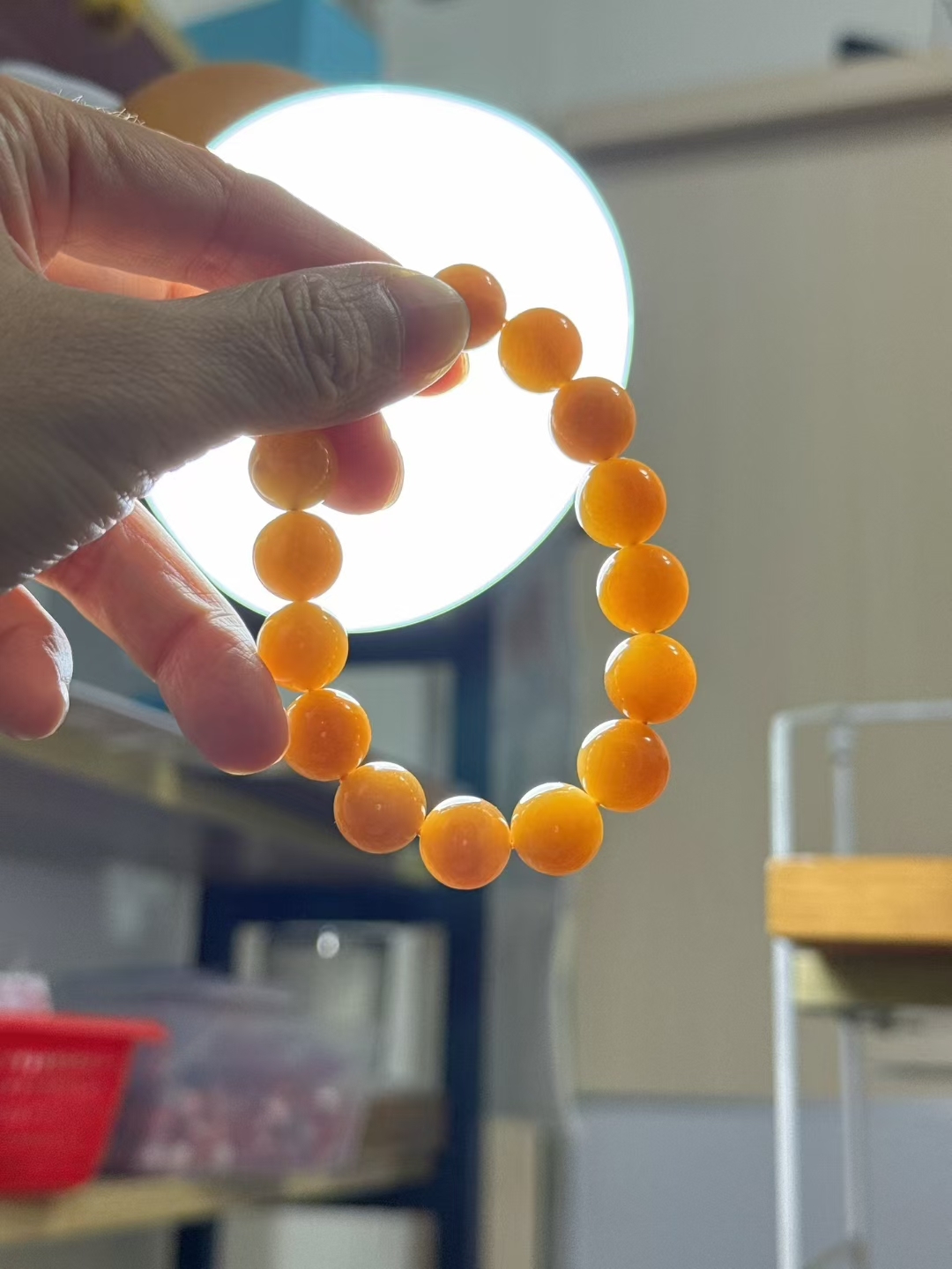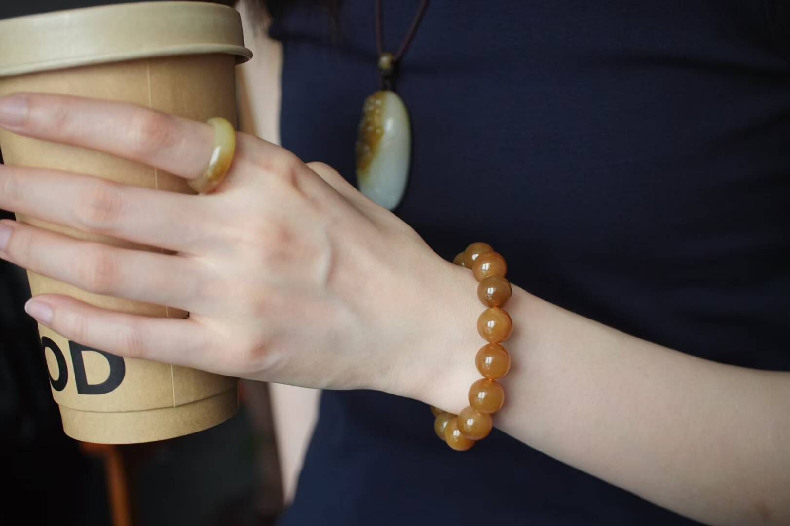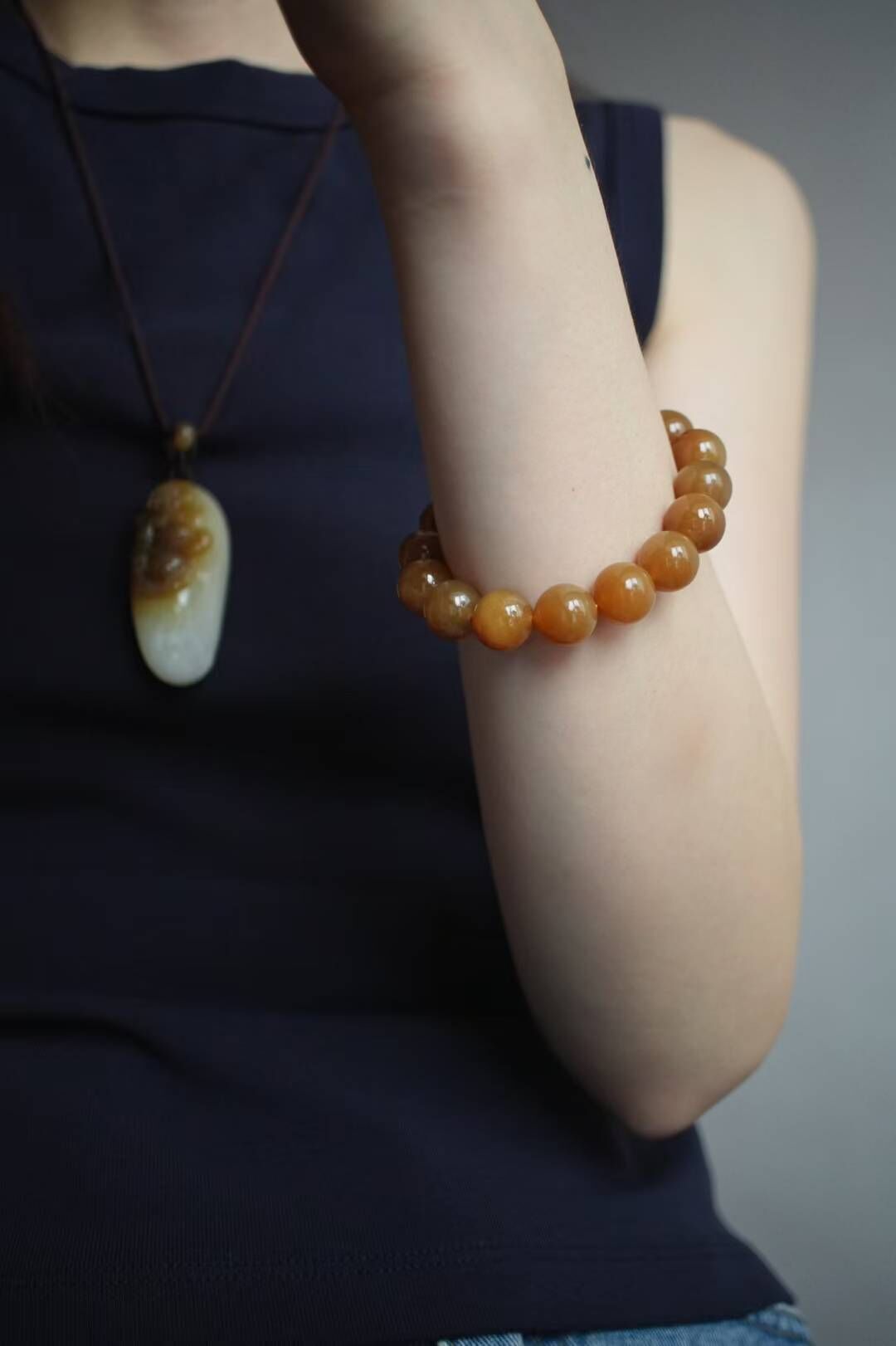 色正油糯,滿屏油感都要溢出來了,不用盤都冒油的好料子,顆顆色澤均勻醇厚全糖色,區別普通糖玉,此條不僅尺寸大,糖紅肉細可過燈,整體乾淨,上手就是不浮誇的貴氣感。