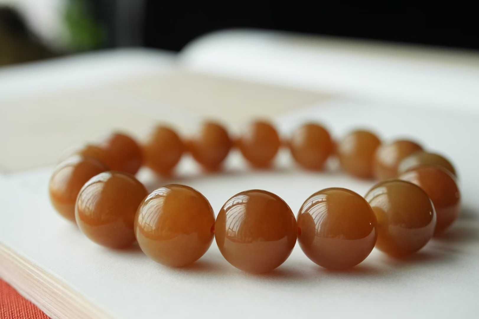 和田玉新疆且末金山礦純糖料,大尺寸金糖串串,顏色非常好!