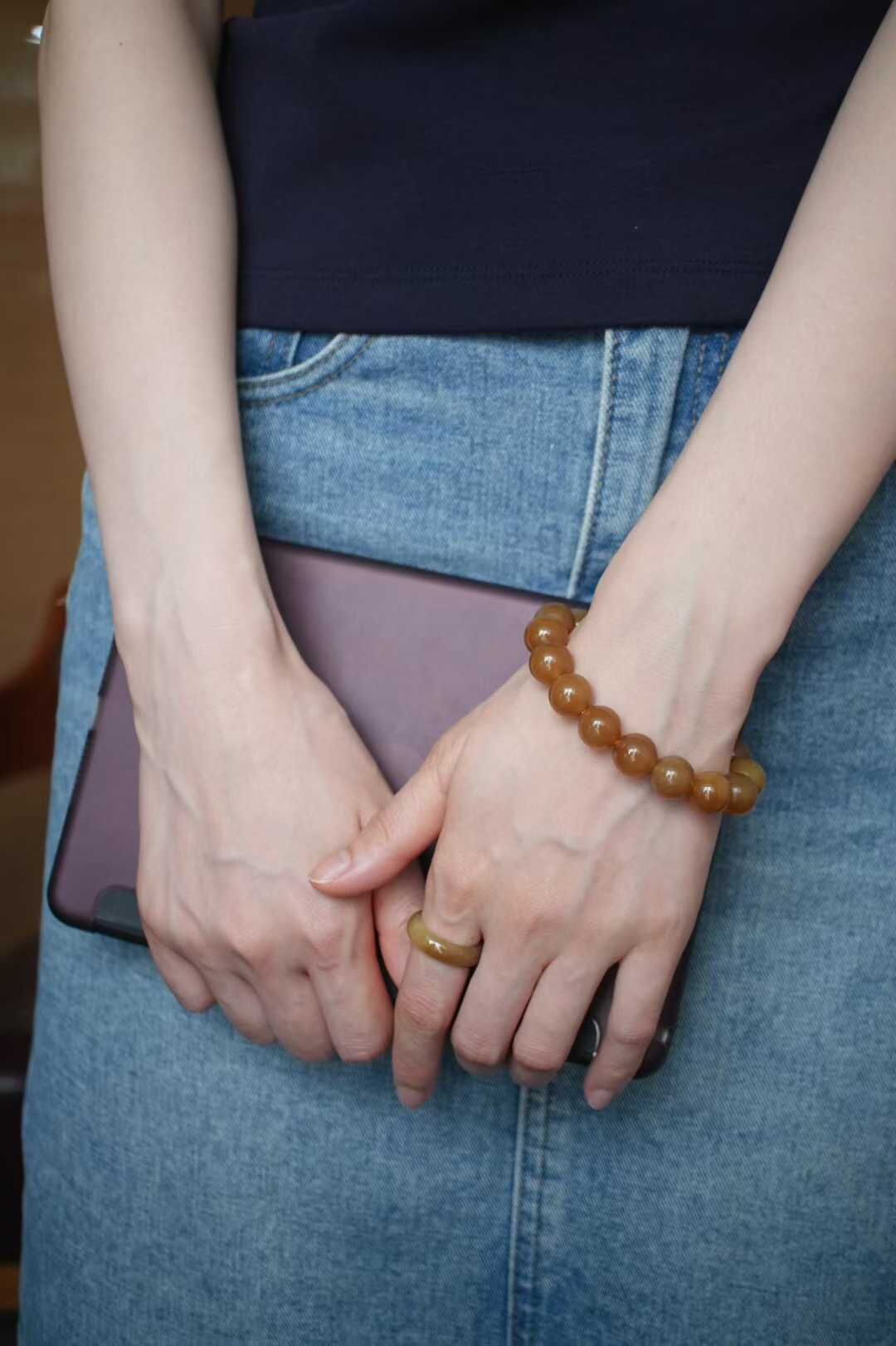 719444 和田玉且末金山礦純糖料圓珠手串