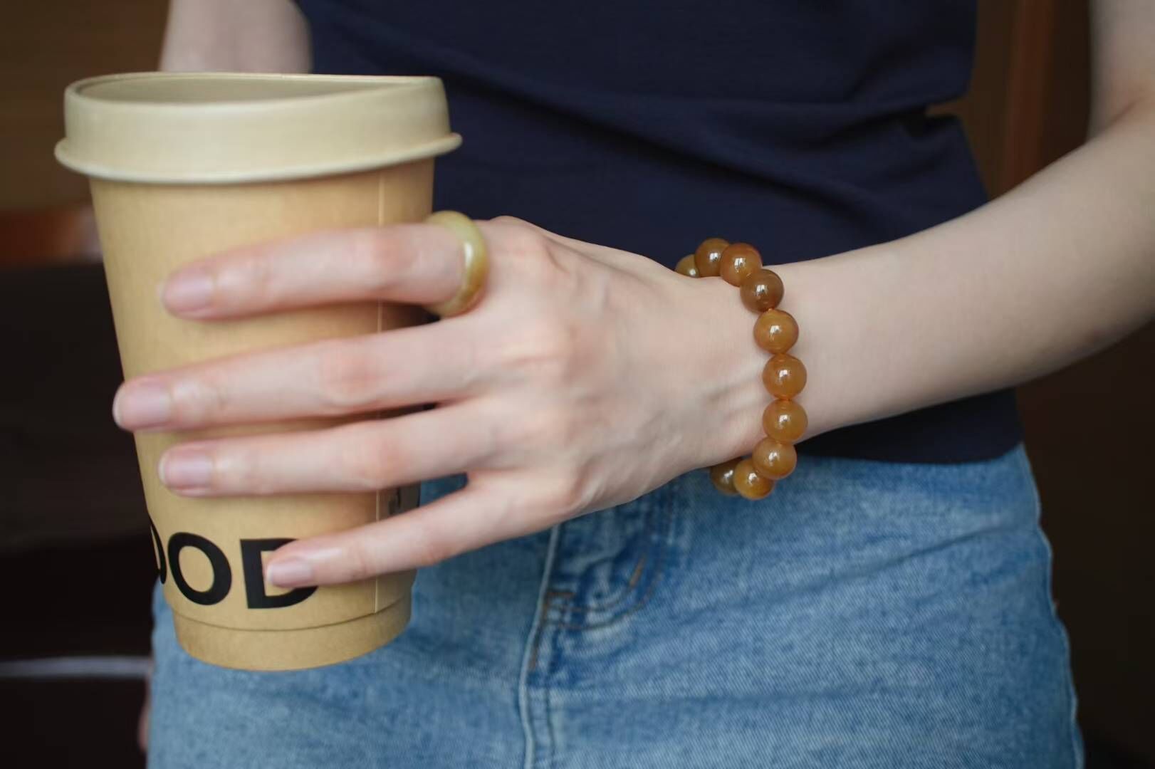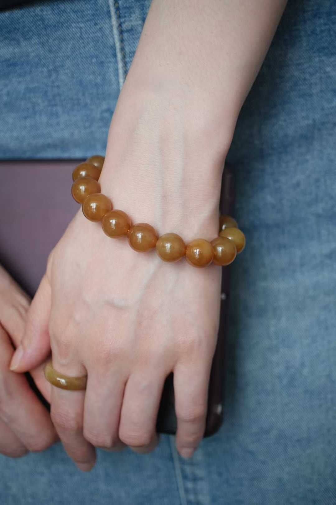 719444 和田玉且末金山礦純糖料圓珠手串 (11.5-12mm直徑)