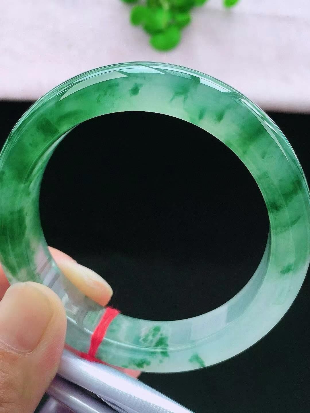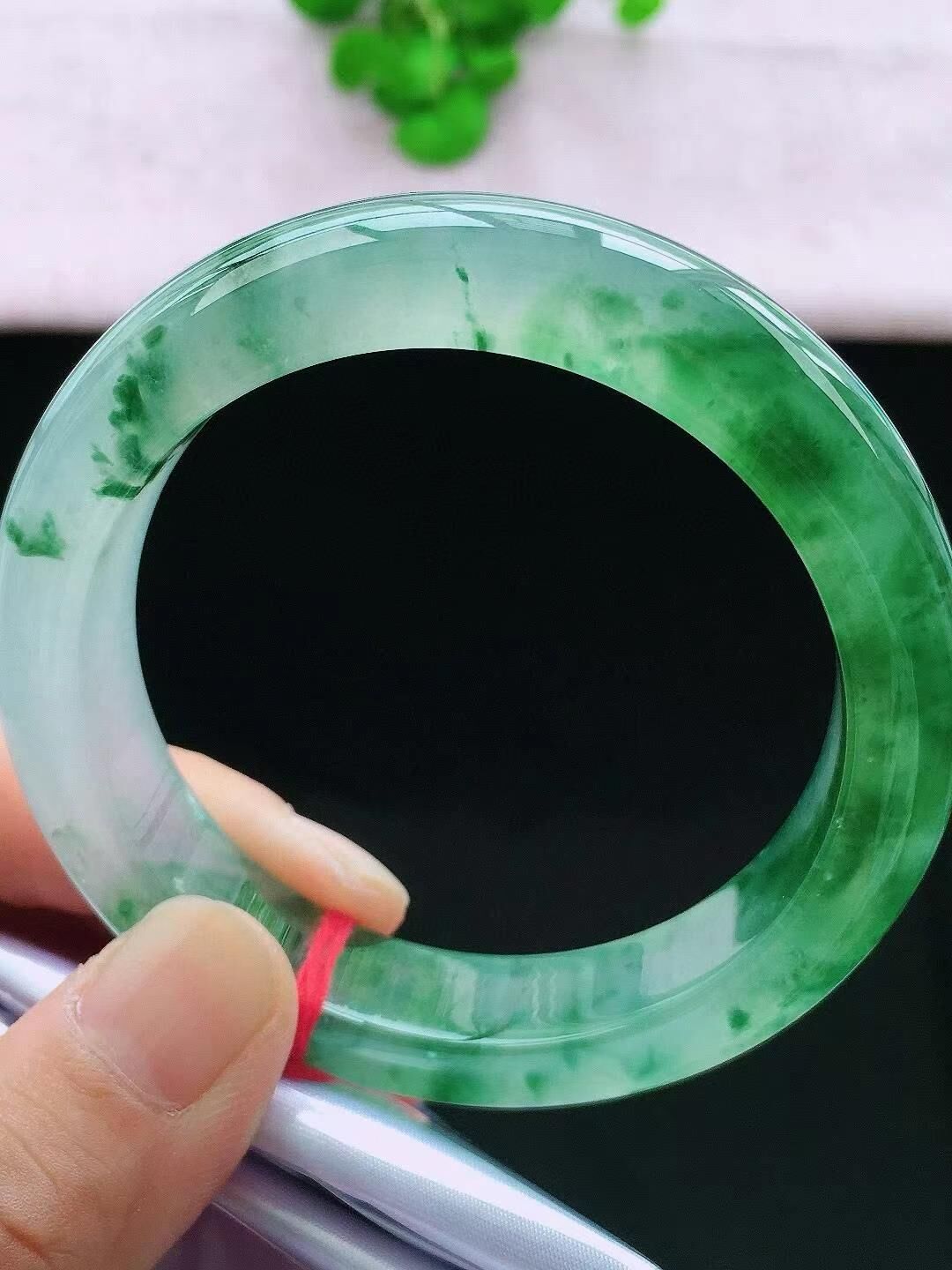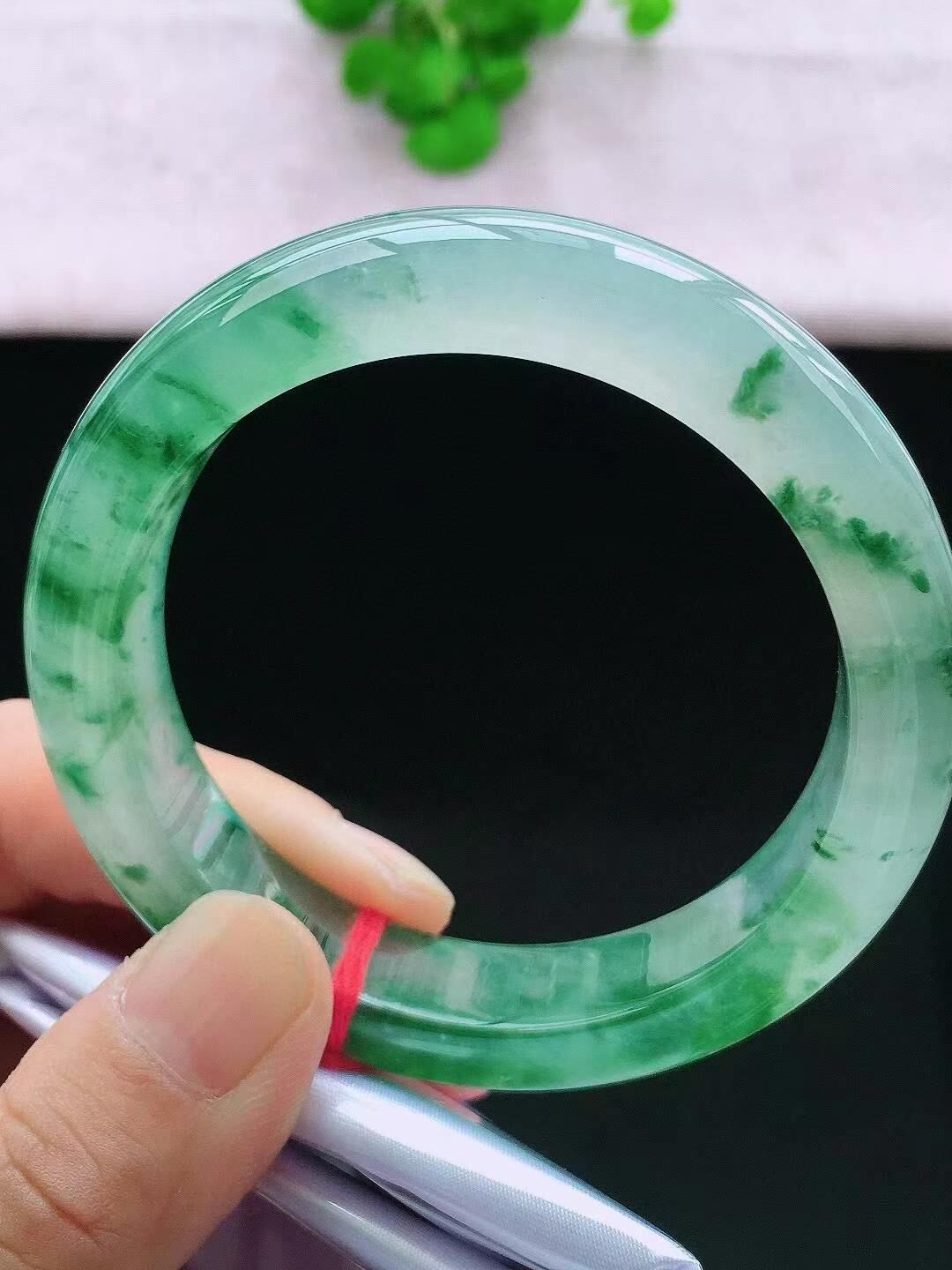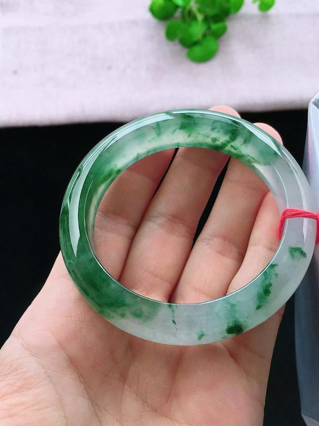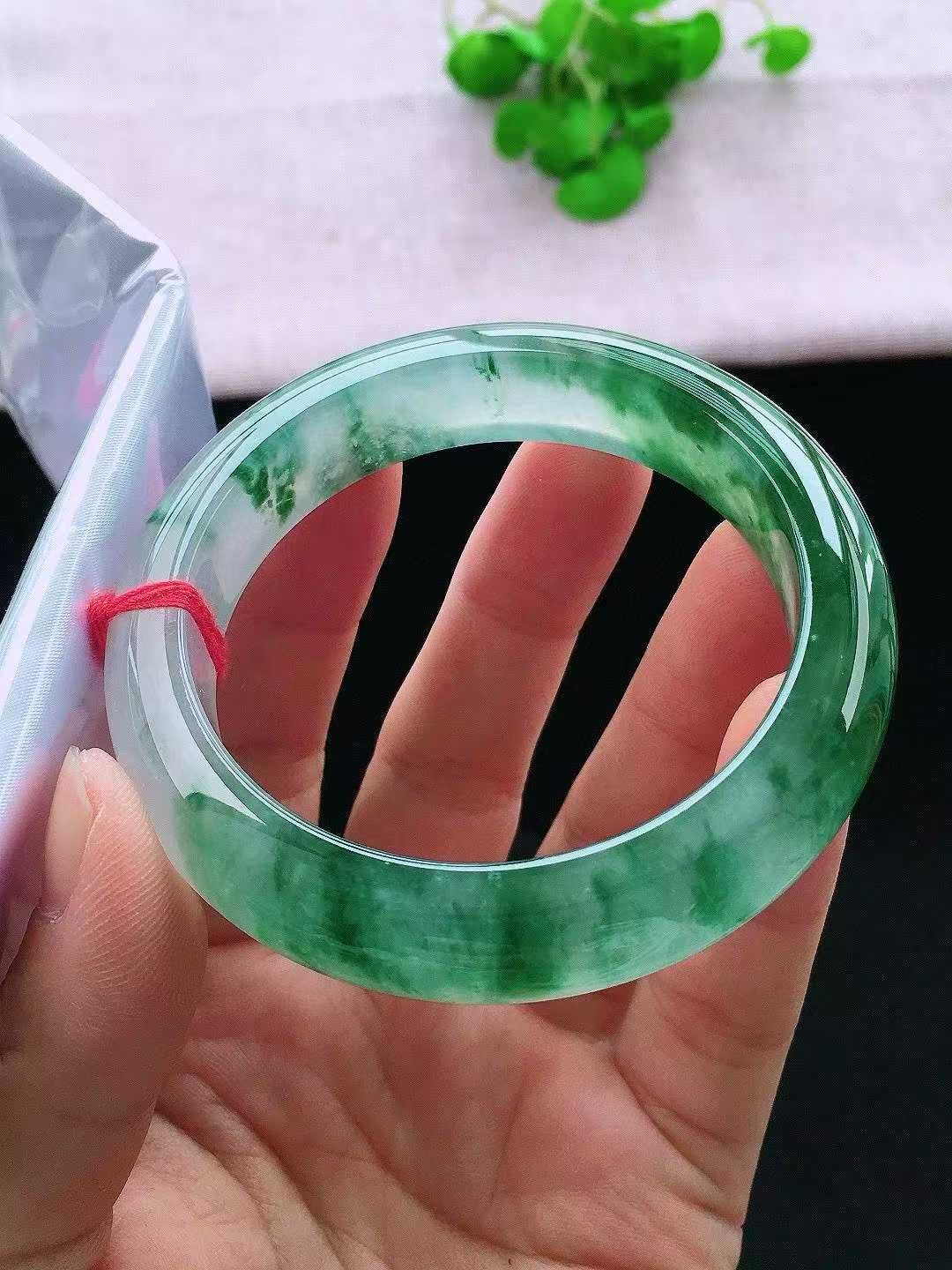 • 冰飄花翡翠正圈手鐲,天然翡翠A玉, 緬甸玉, Jade, Jadeite