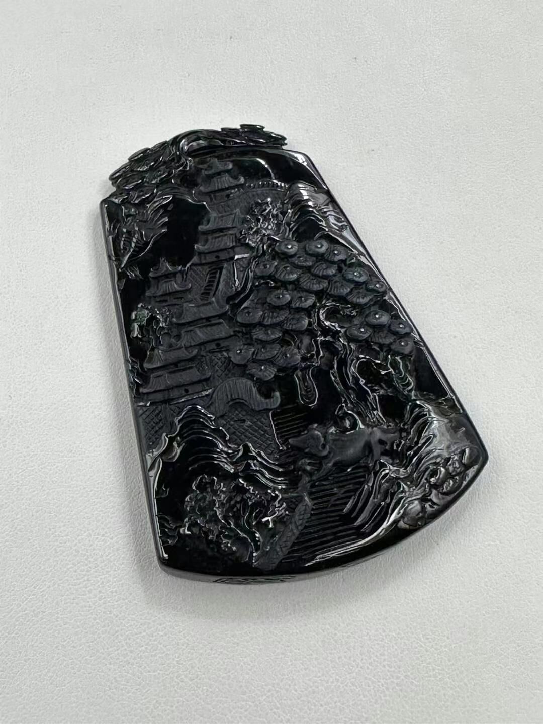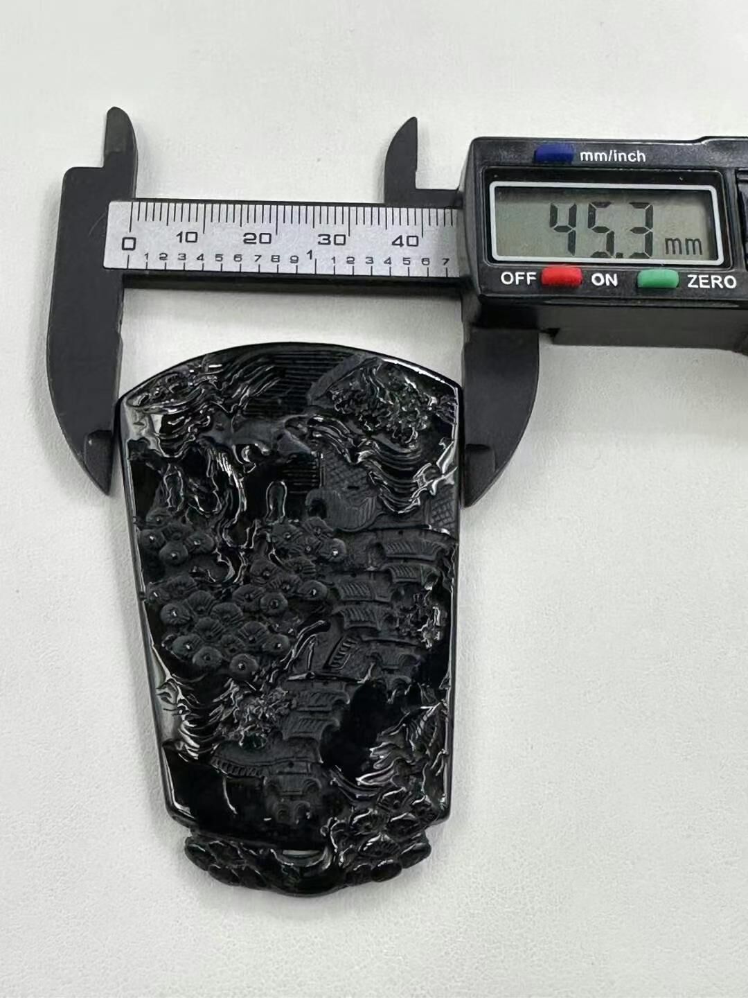 • 翡翠墨翠山水牌,天然翡翠A玉, 緬甸玉, Jade, Jadeite