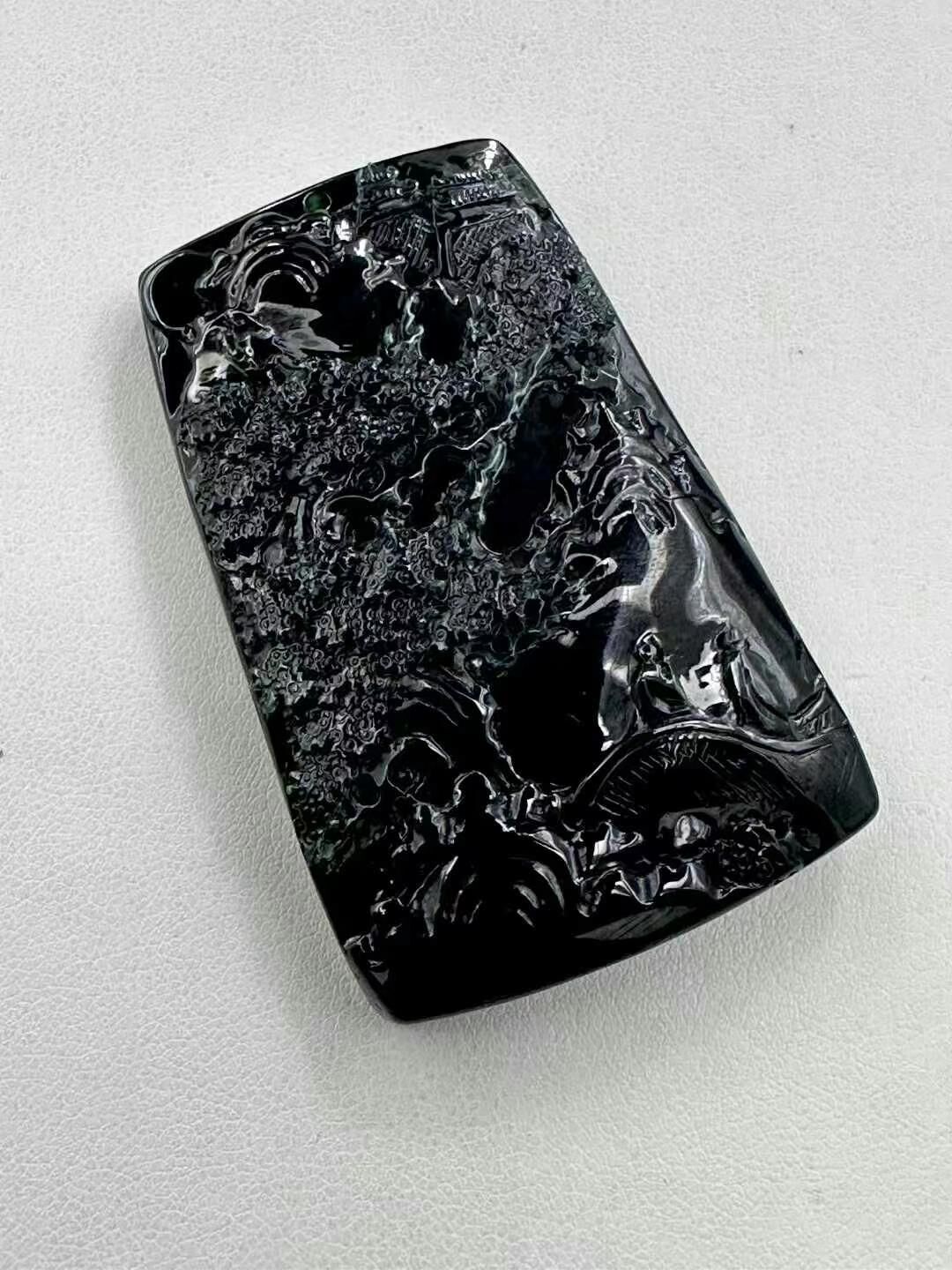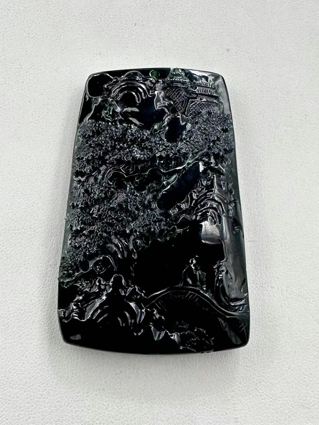 • 翡翠墨翠山水牌,天然翡翠A玉, 緬甸玉, Jade, Jadeite