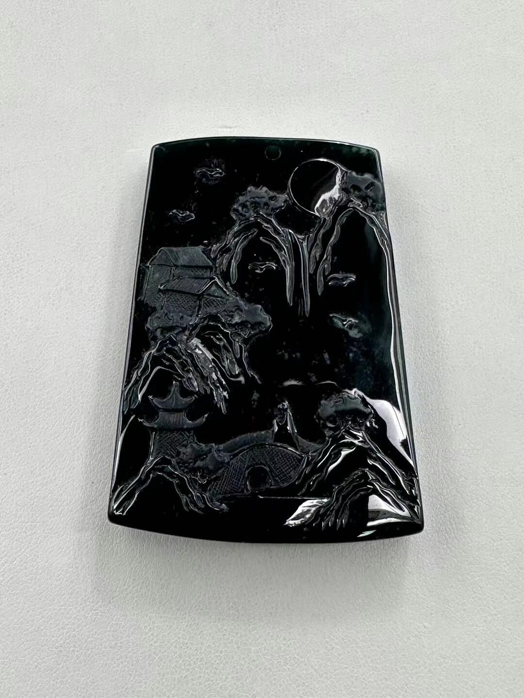 • 翡翠墨翠山水牌,天然翡翠A玉, 緬甸玉, Jade, Jadeite