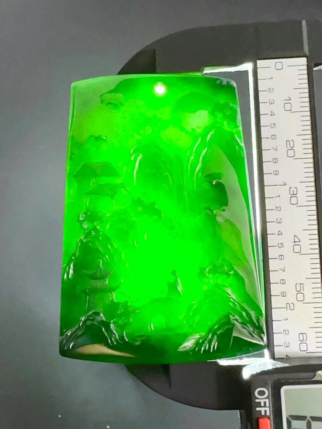 天然翡翠A玉,燈照透綠,雕工精美,完美無紋裂。