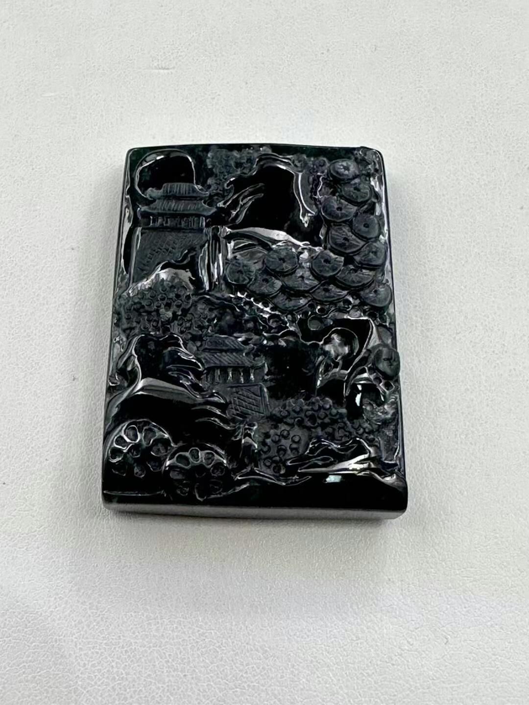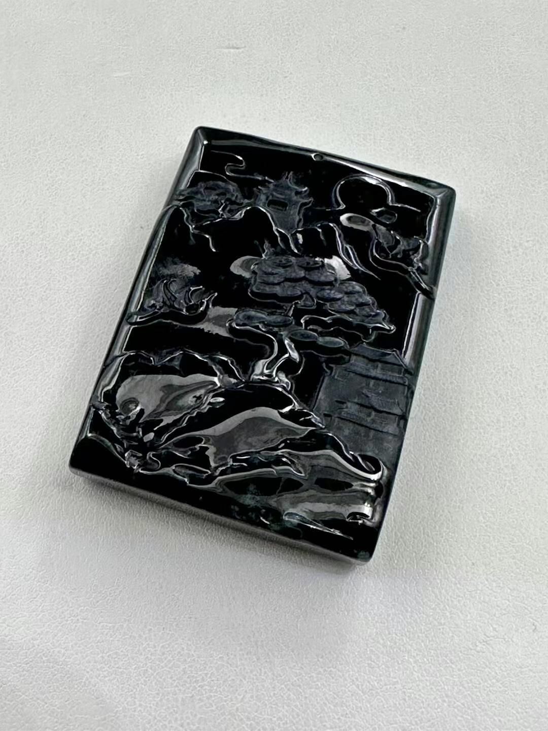 • 翡翠墨翠山水牌,天然翡翠A玉, 緬甸玉, Jade, Jadeite