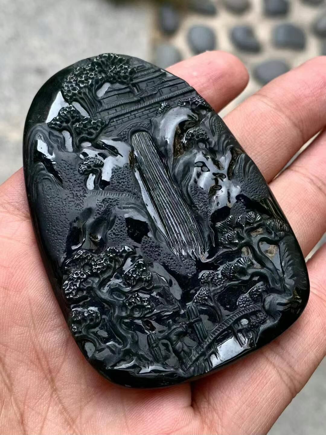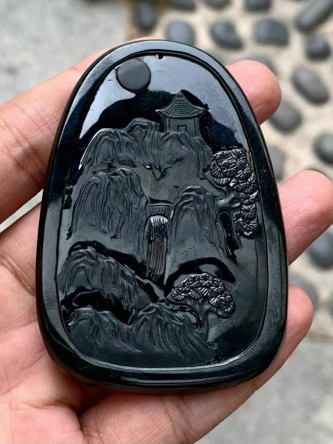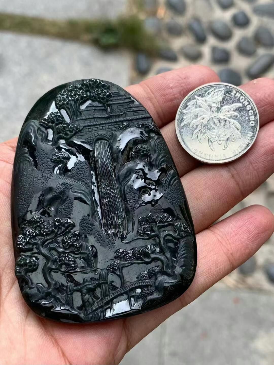 • 翡翠墨翠大山水牌,天然翡翠A玉, 緬甸玉, Jade, Jadeite