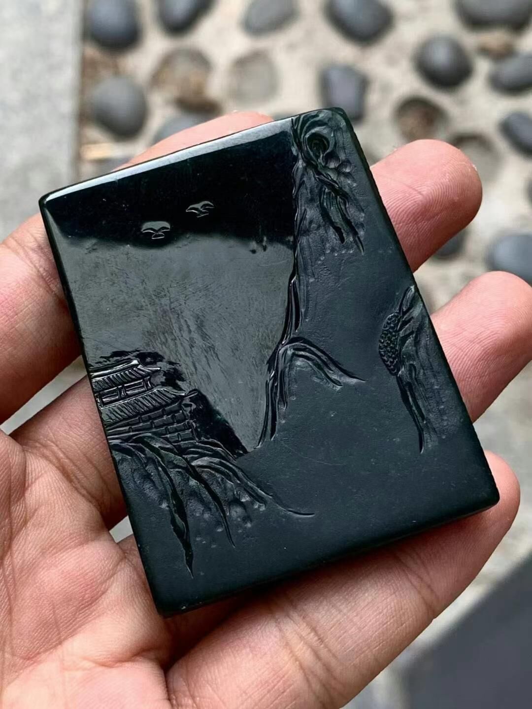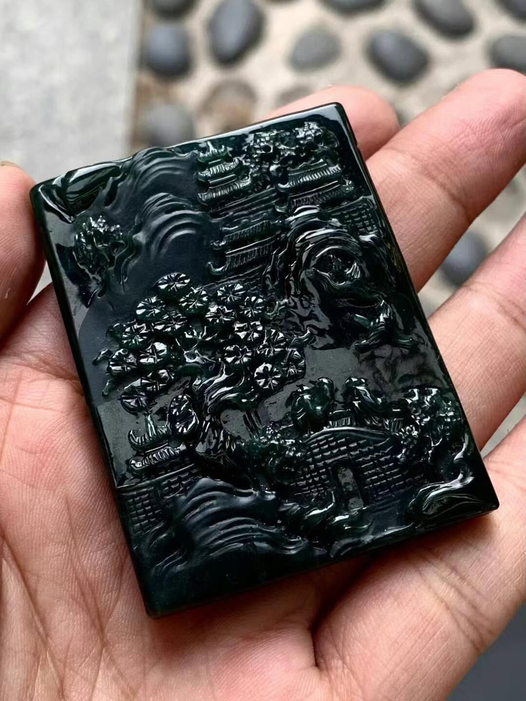 719599 翡翠墨翠山水牌