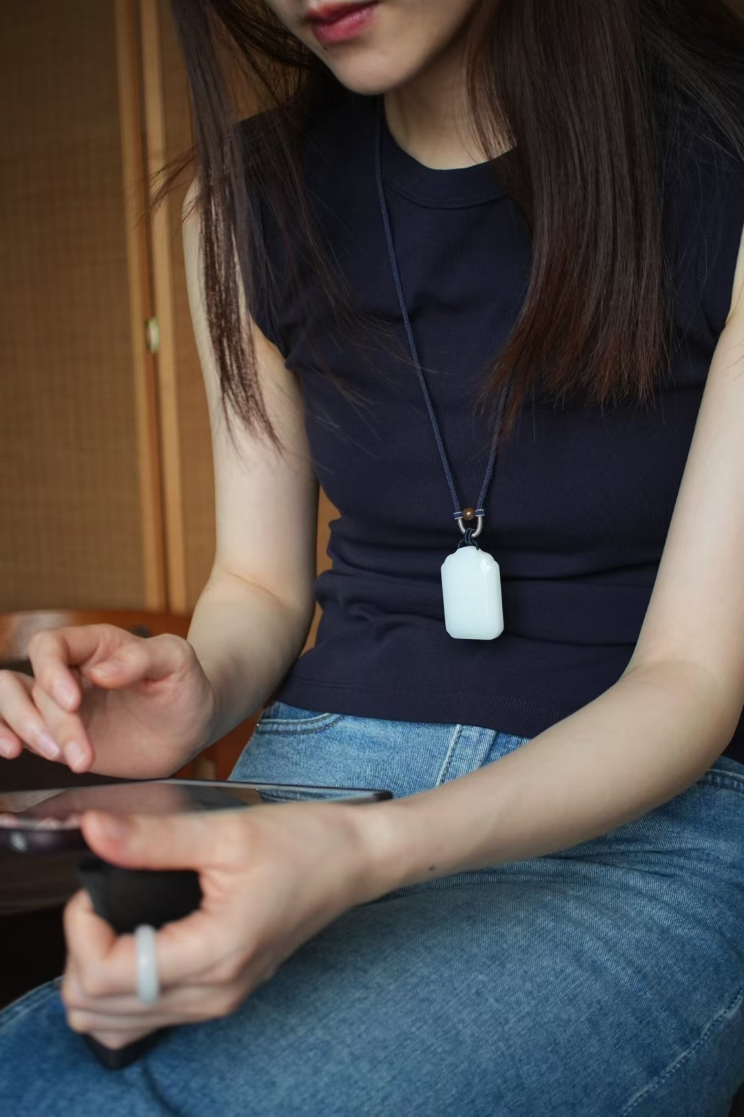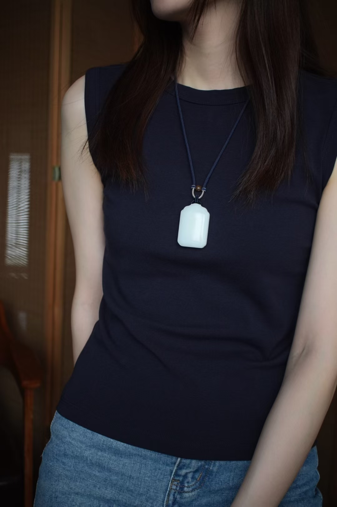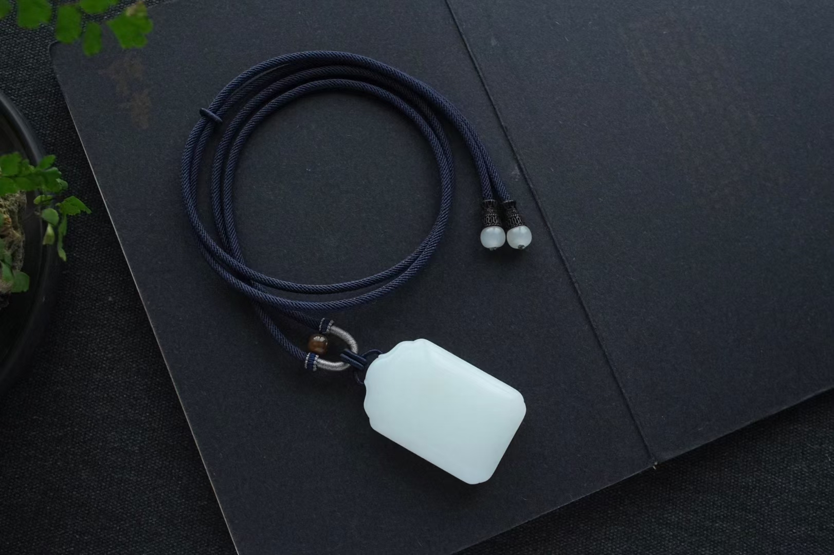 牌型規整大氣,賦予平安無事的意念,出一塊賣一塊的性價比好貨。搭配純手工製作進口繩,黑檀雕刻鈴鐺連接白玉老型珠作尾墜,點綴糖料圓珠,佩戴典雅大氣。