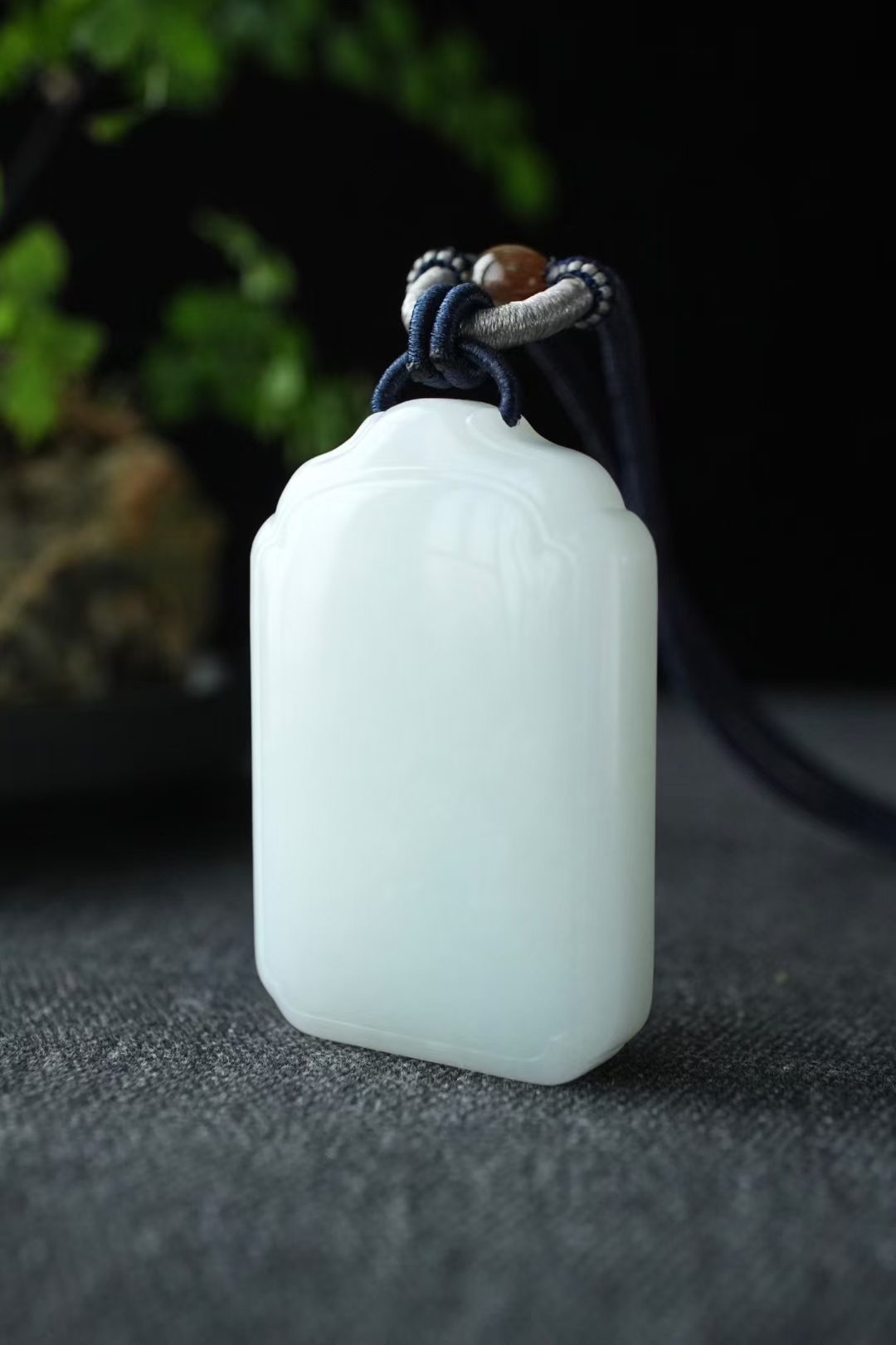 • 和田玉羊脂玉平安無事牌掛件,天然和田玉軟玉