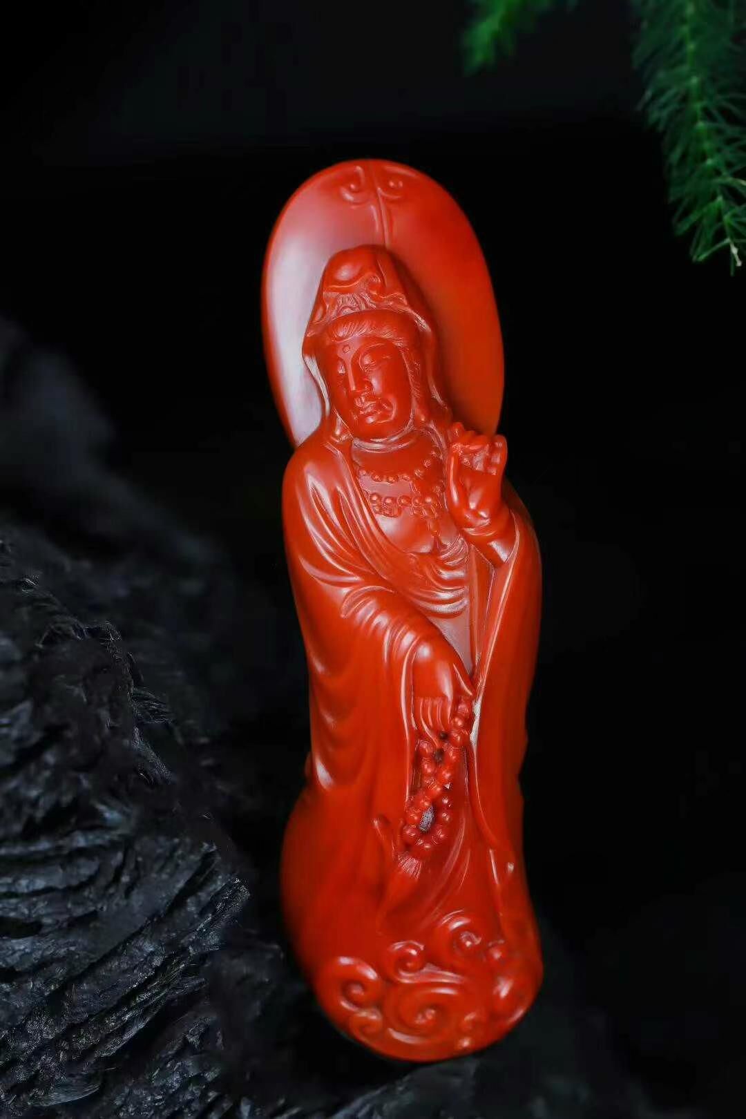 頂級南紅瑪瑙藏品,請觀音的朋友不要錯過,極其難得一見的立體圓雕全身觀音像,工料俱佳的一件收藏級佳作