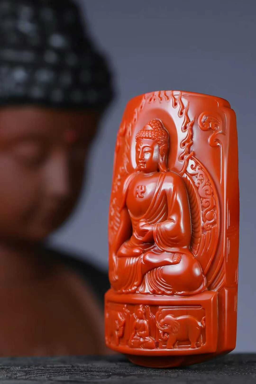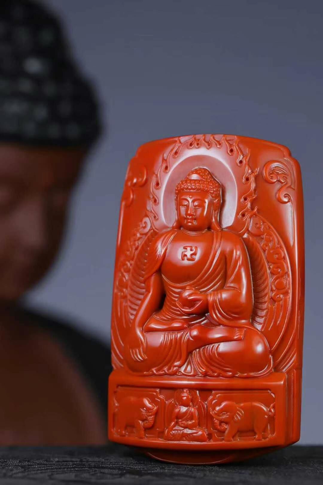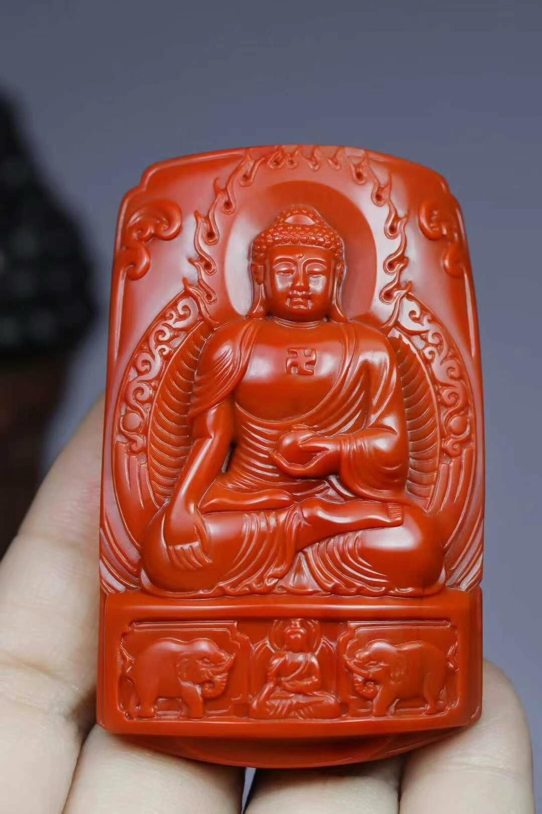 滿色滿肉柿子紅,質地油潤,顏色極好,頂級玉化細潤無比,飽滿濃鬱,媲美和田美玉,精雕大日如來,雕工精細,極致高浮雕刻,線條流暢,嫻熟自然,佛相祥和端正,福運濟濟,賜福驅邪,有求必應