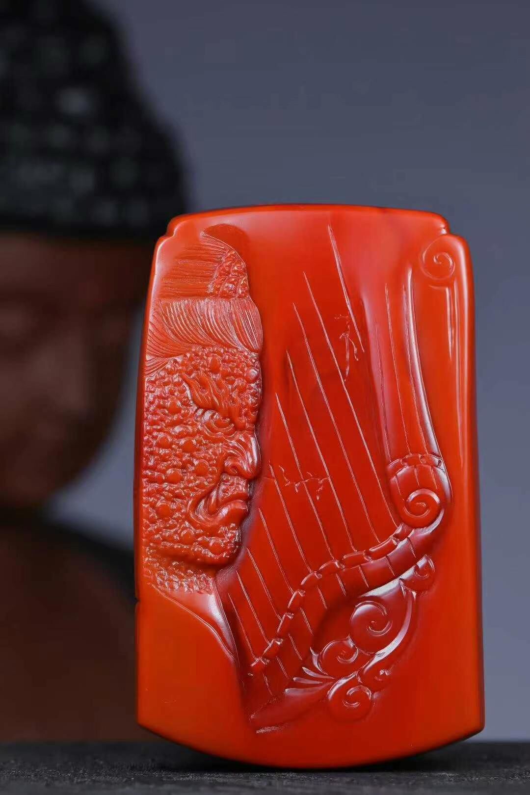 南紅瑪瑙,頂級收藏級極品掛件,名師作品,超級罕見的方正南紅大牌子,立體感超強的一件立體高浮雕作品,頂級瓦西玉化老料