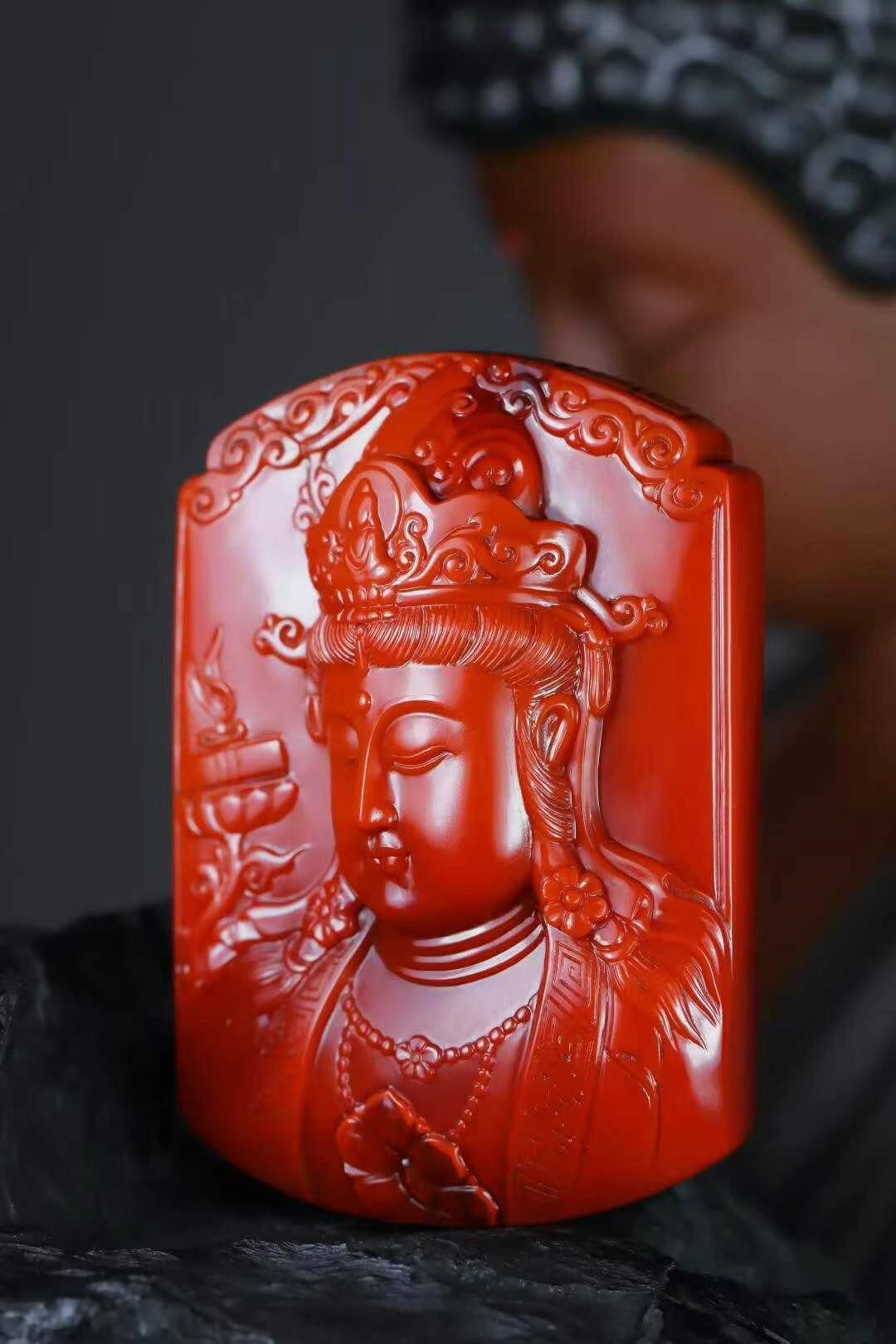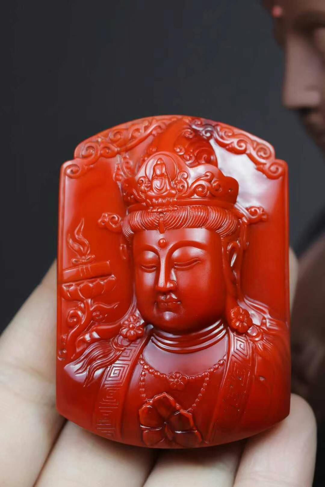 南紅瑪瑙,頂級收藏級觀音掛件,非常罕見的規整厚莊大牌子,優選極品瓦西玉化料,滿色滿肉柿子紅錦紅,色澤紅潤艷麗,玉質溫潤細膩,牌型規整大氣,精緻美觀