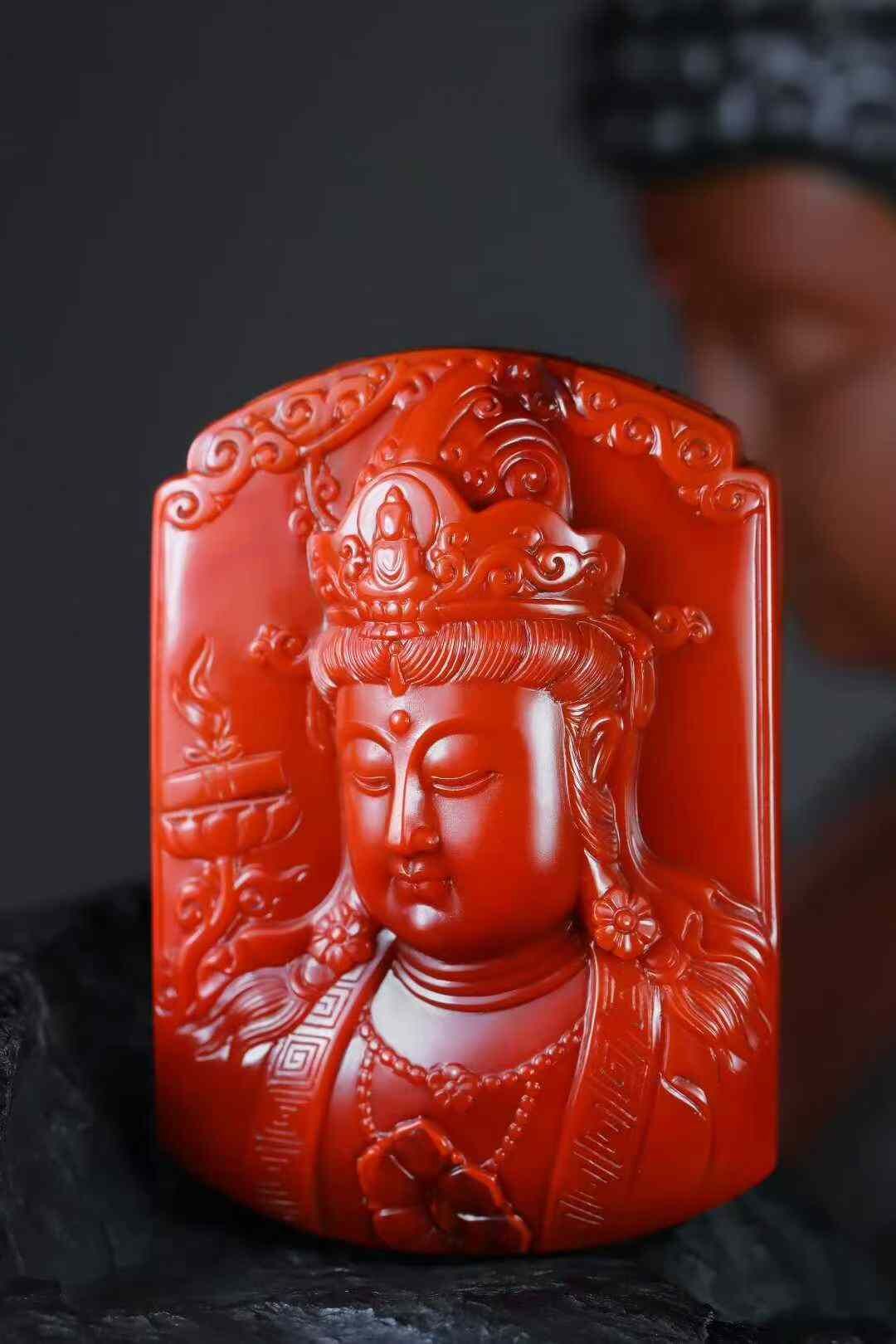 • 南紅觀音像,天然南紅瑪瑙