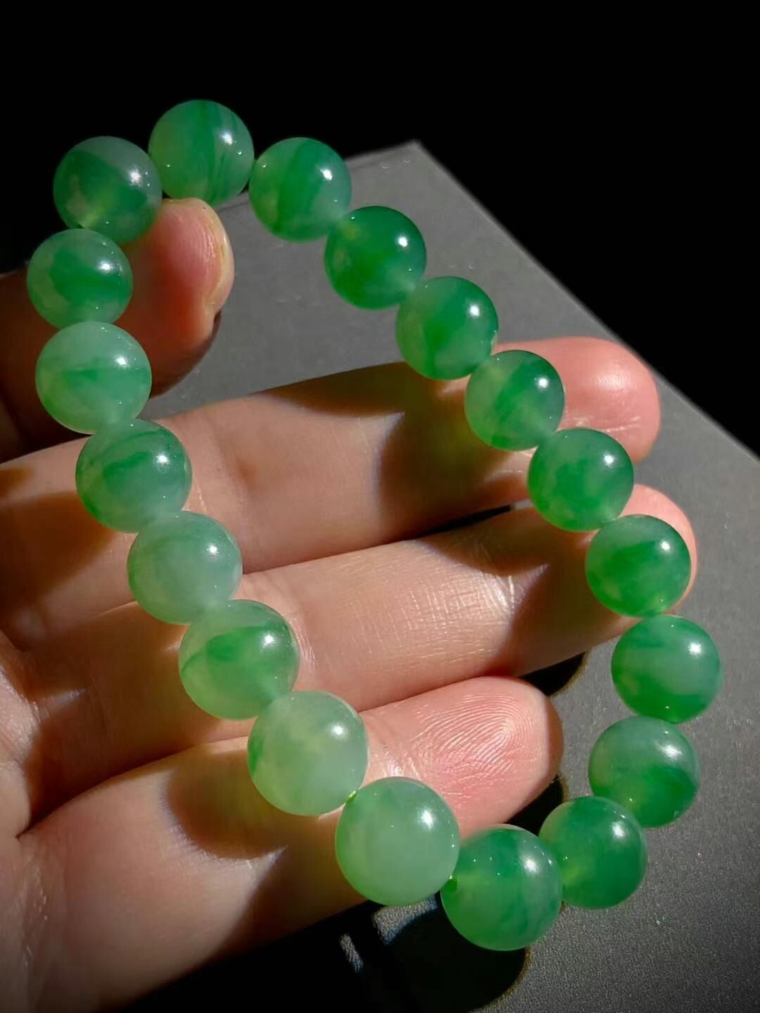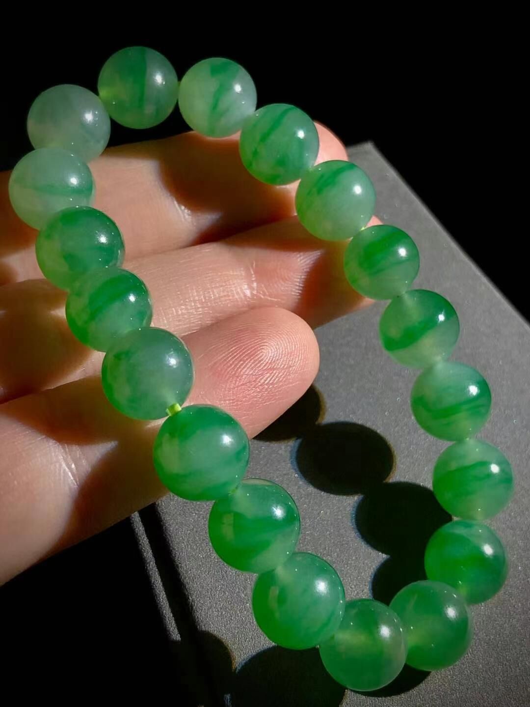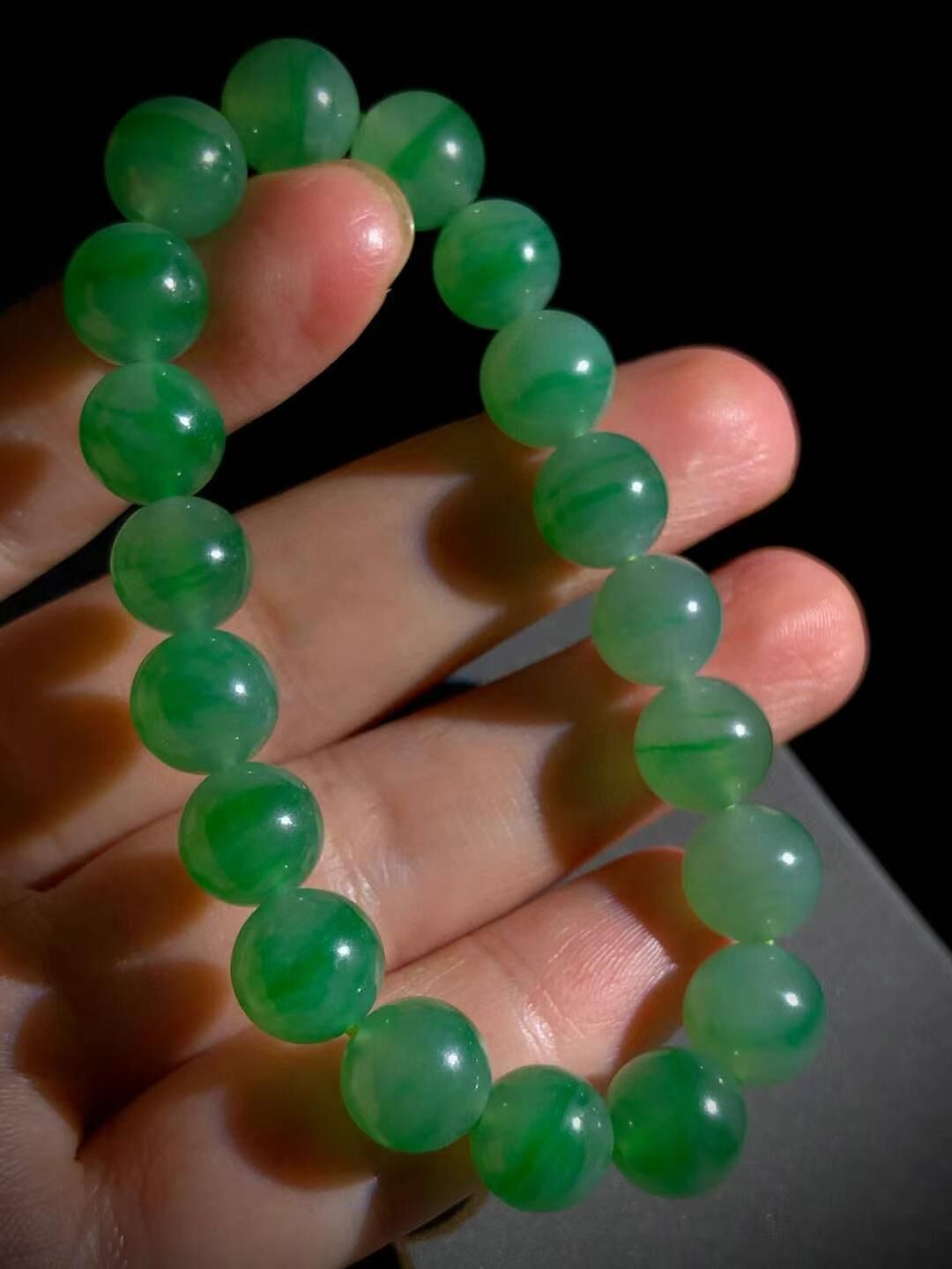 天然翡翠A玉,綠花珠子手鏈手串。