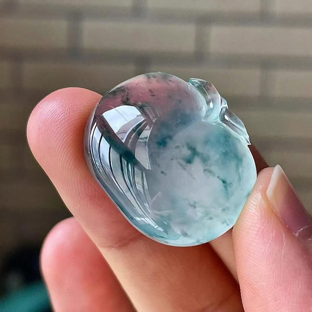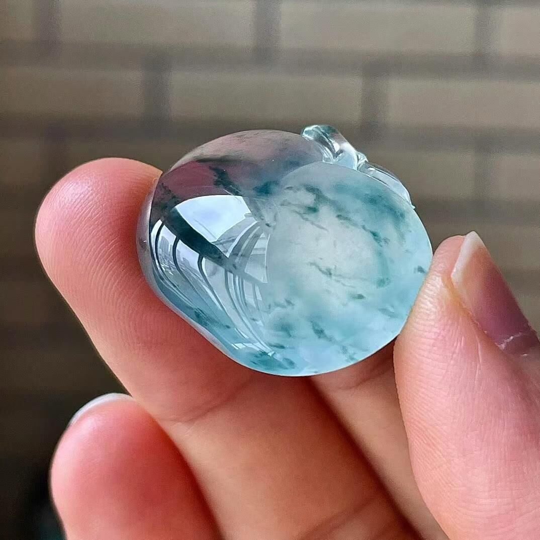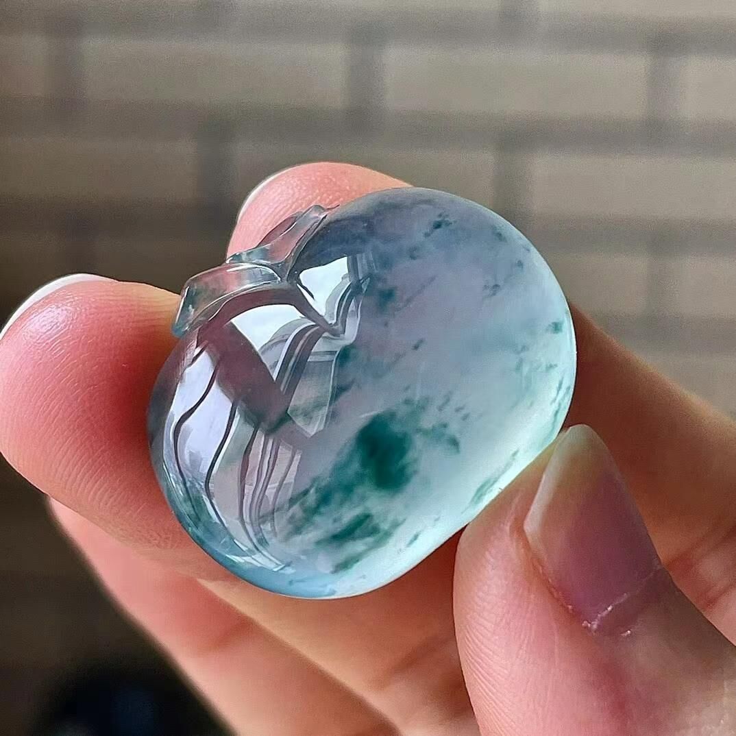 7205550 翡翠玻璃種飄花蘋果吊墜