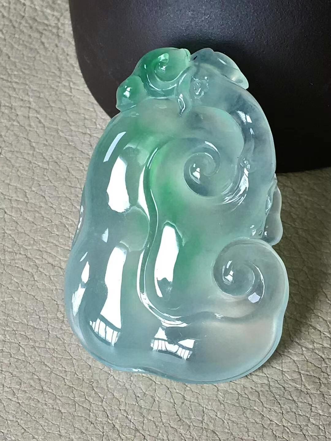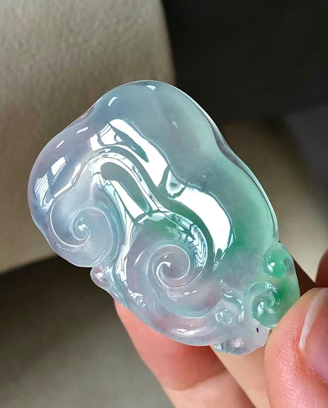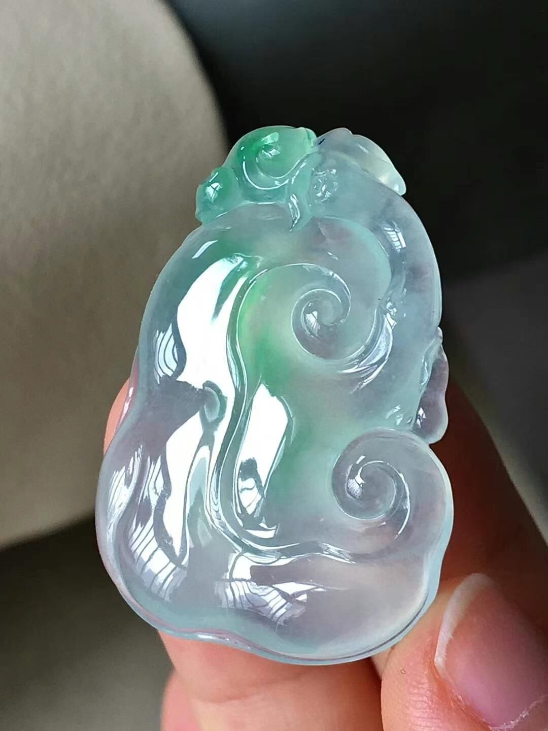 • 翡翠玻璃種飄綠如意,天然翡翠A玉, 緬甸玉, Jade, Jadeite