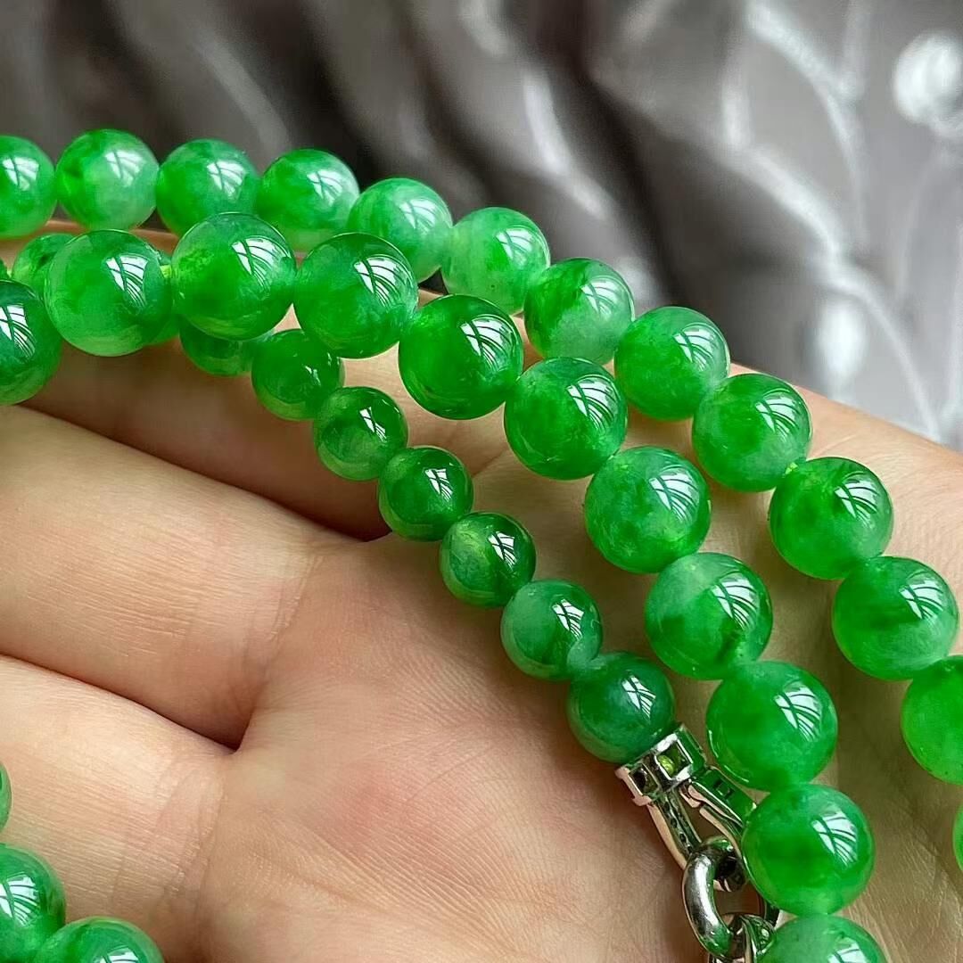 7205555 翡翠冰辣綠珠鏈 (6.6-7.8mm直徑)