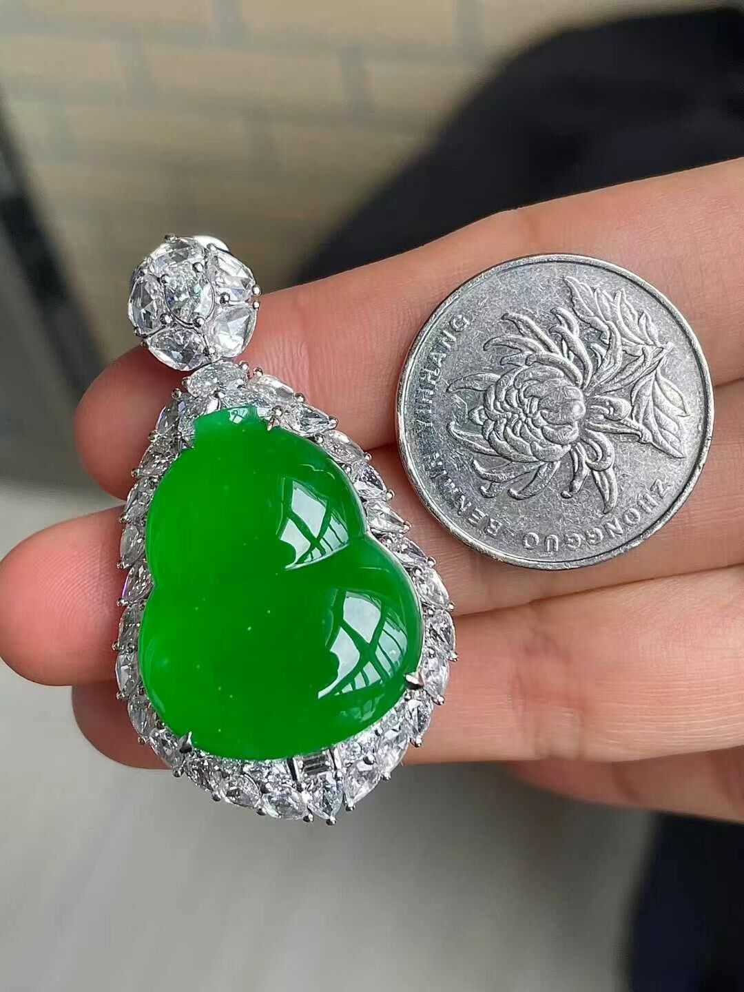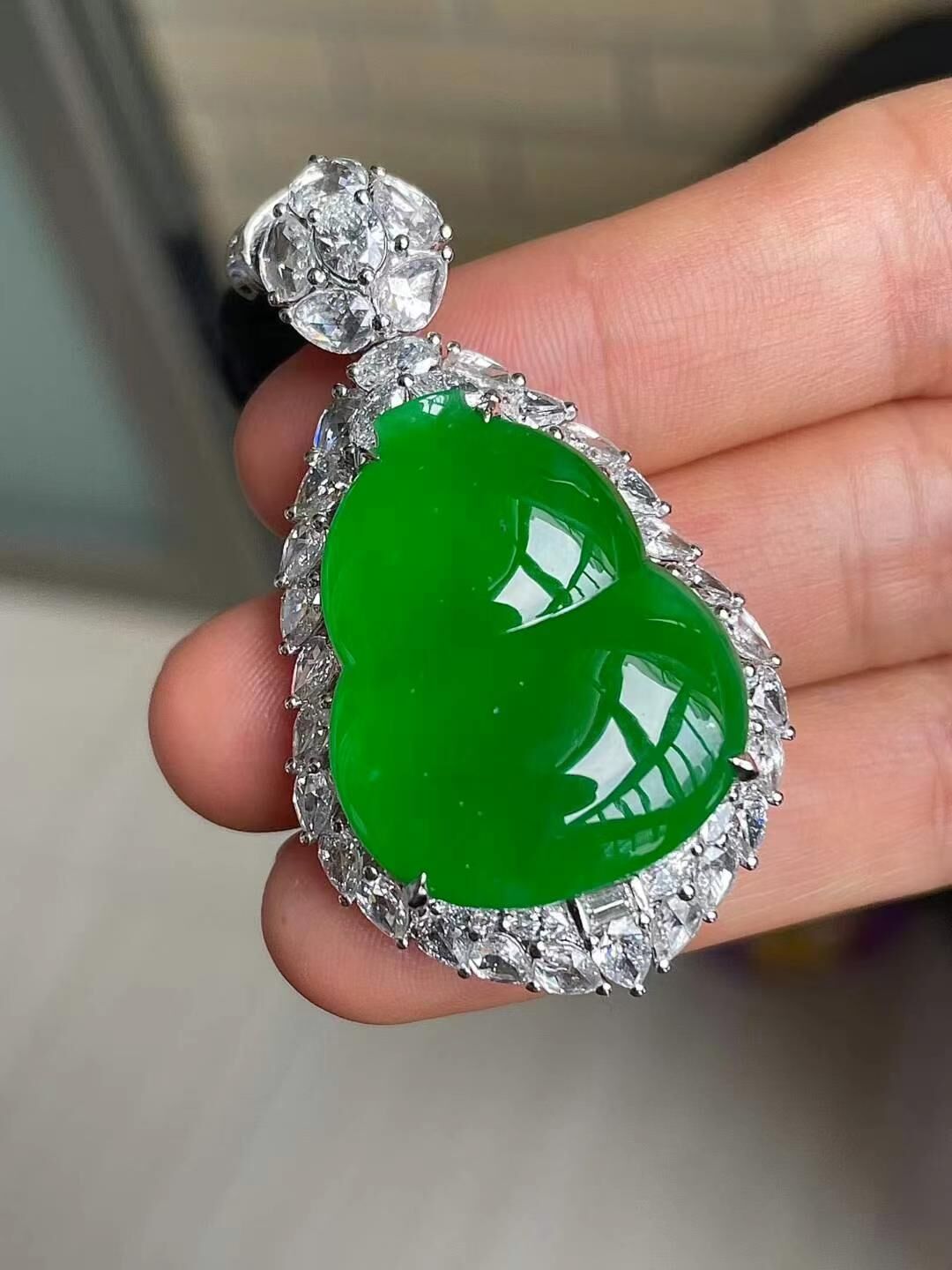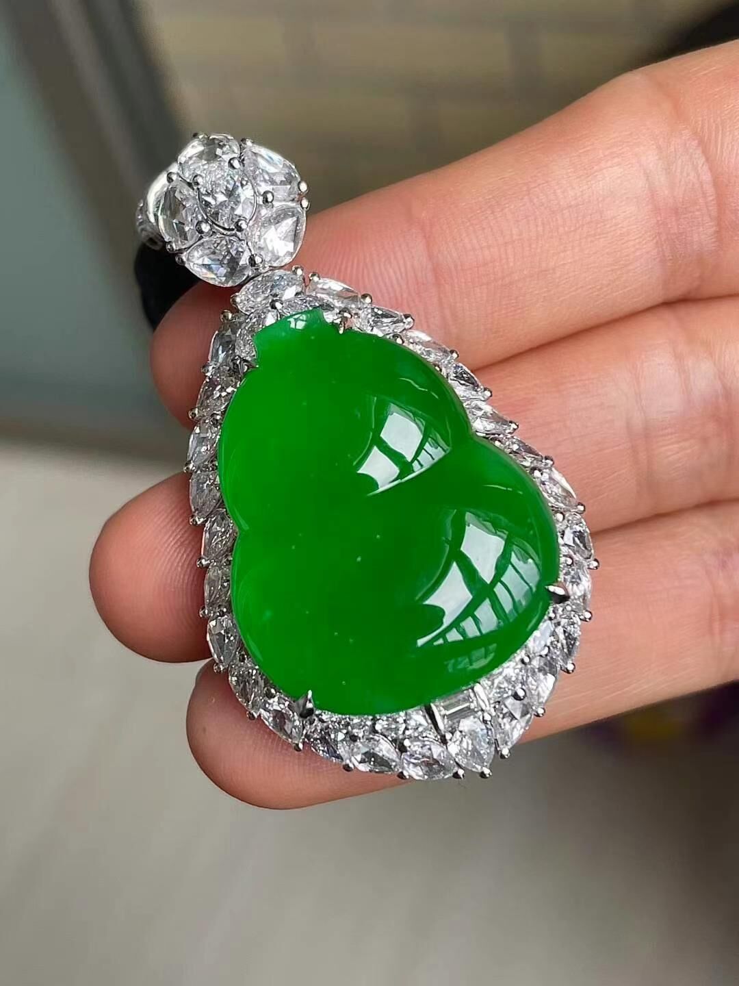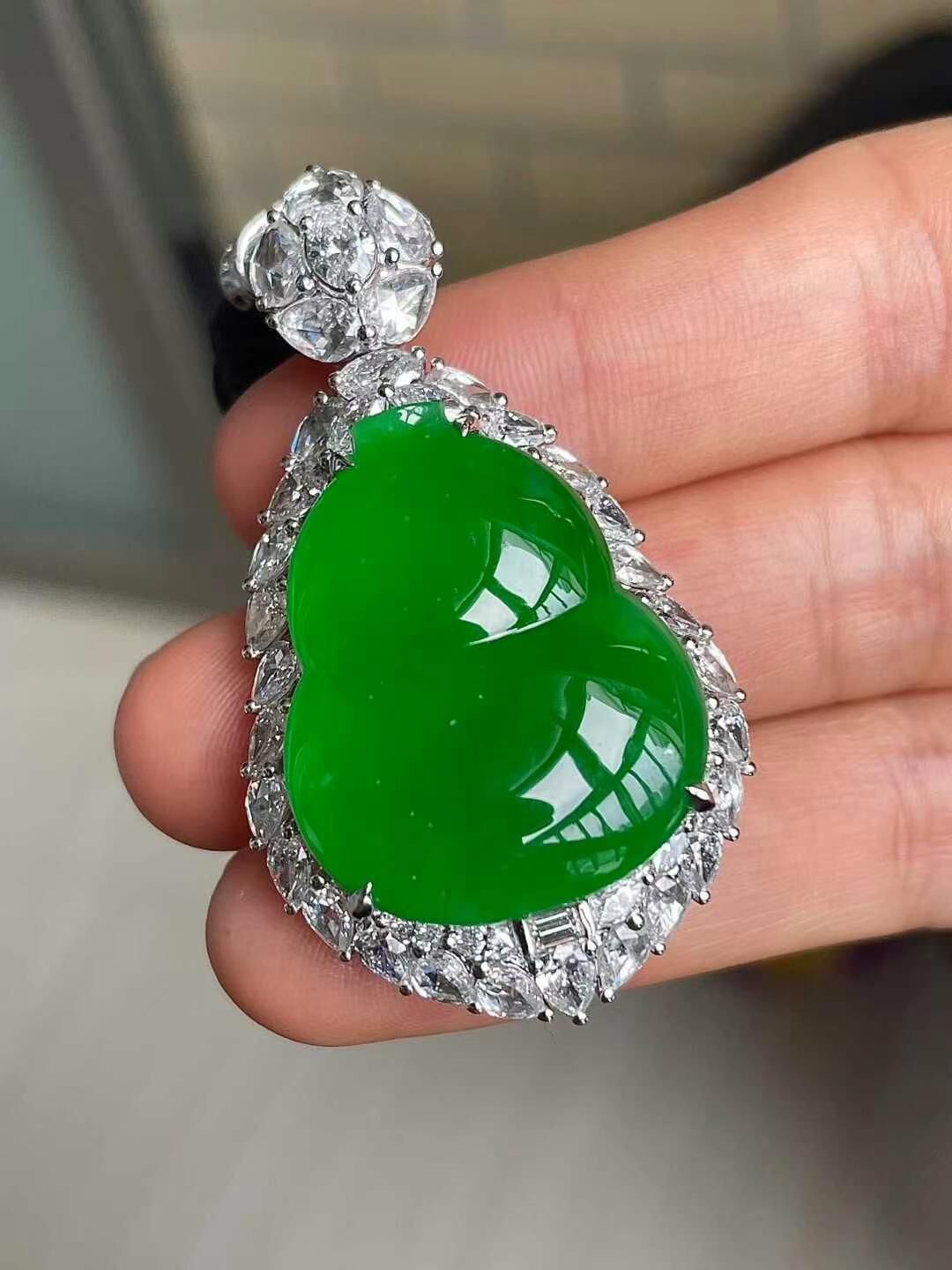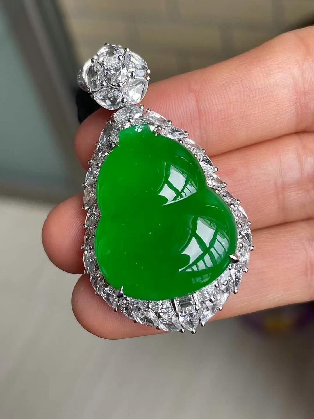 • 翡翠冰種辣綠葫蘆吊墜,天然翡翠A玉, 緬甸玉, Jade, Jadeite