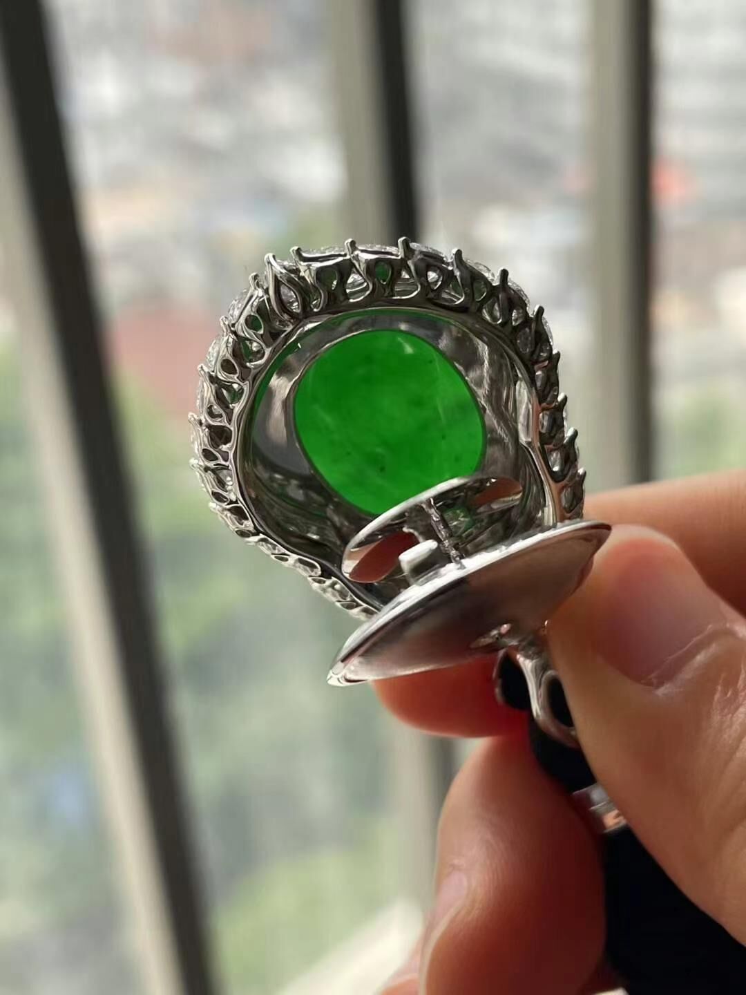 天然翡翠A玉,緬料,完美無紋裂,鑲嵌精美,色澤艷麗,水潤細膩。