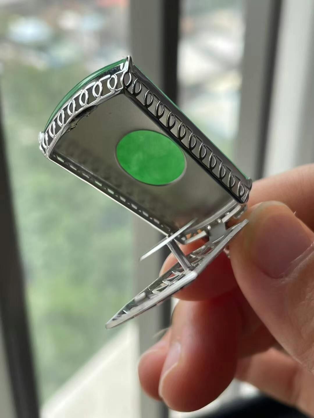 天然翡翠A玉,18K金鑲嵌,飽滿水潤,無裂。