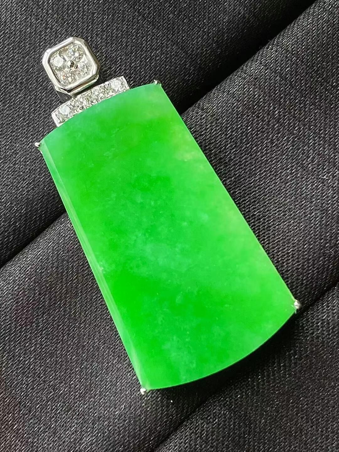 • 翡翠緬料冰陽綠無事牌吊墜,天然翡翠A玉, 緬甸玉, Jade, Jadeite