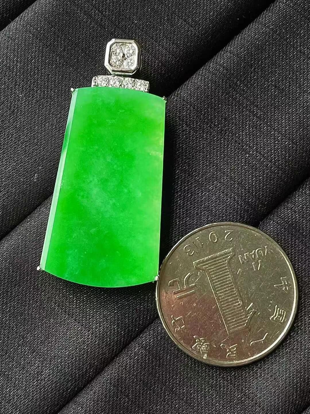 7205559 翡翠緬料冰陽綠無事牌吊墜