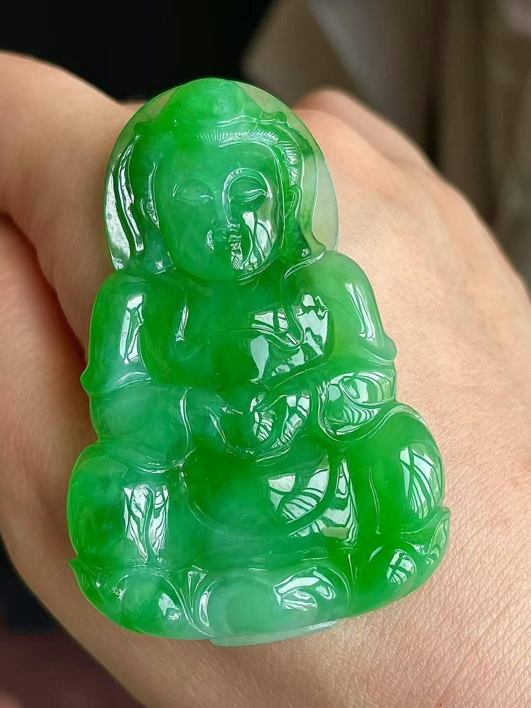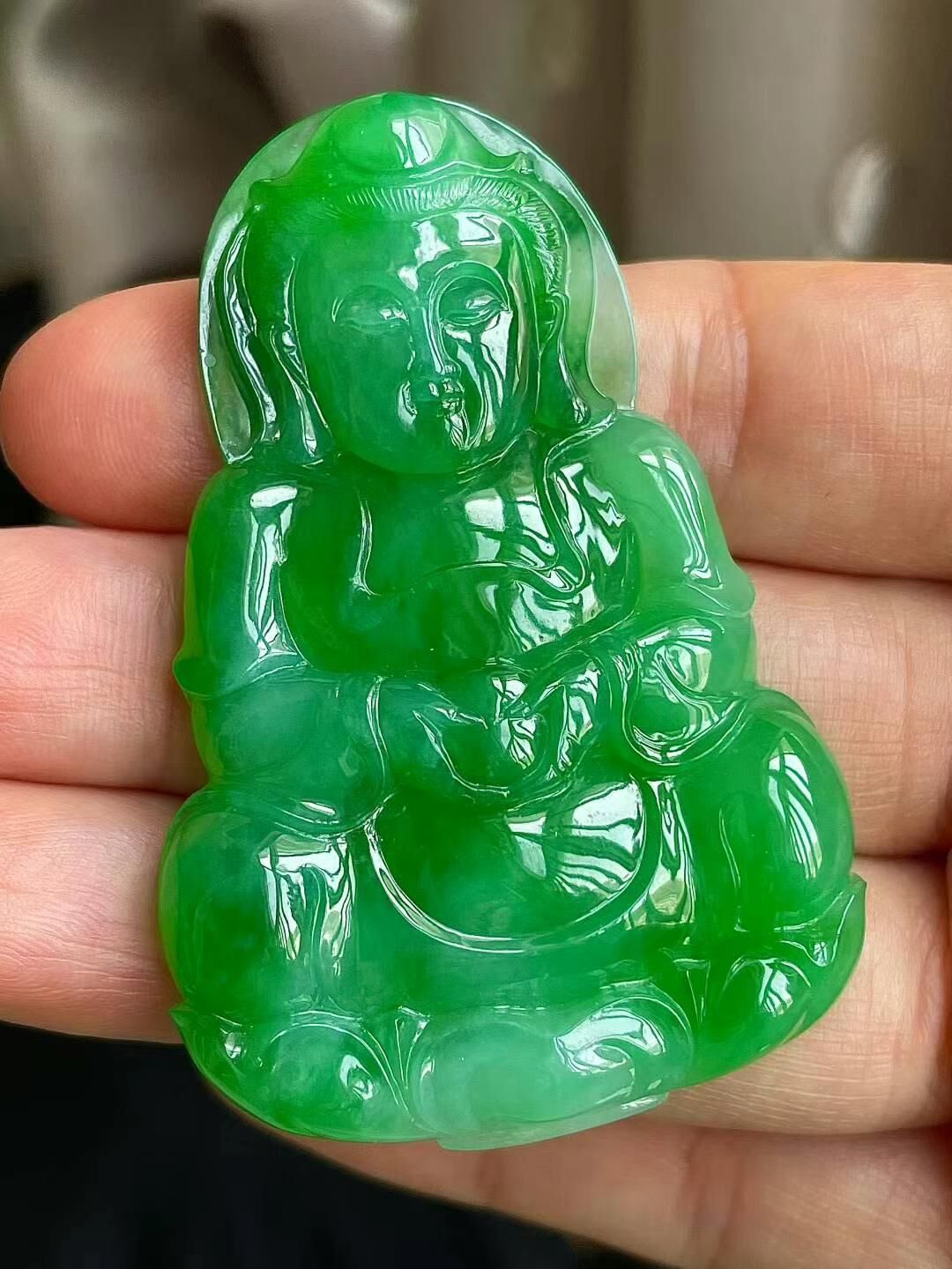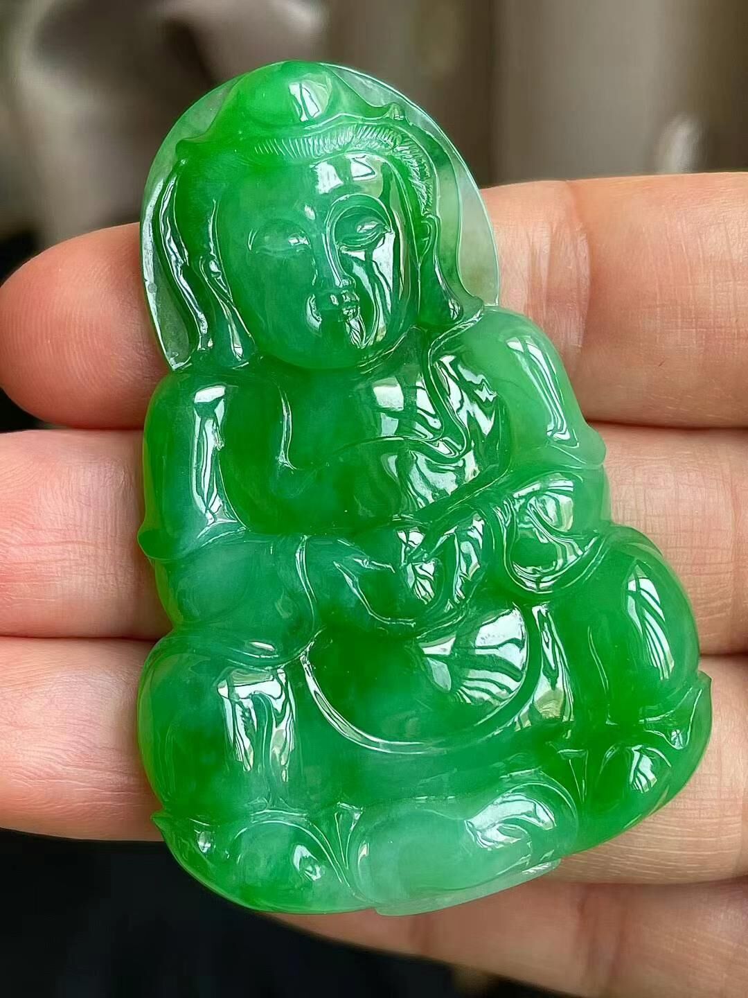 • 翡翠冰陽綠觀音吊墜,天然翡翠A玉, 緬甸玉, Jade, Jadeite