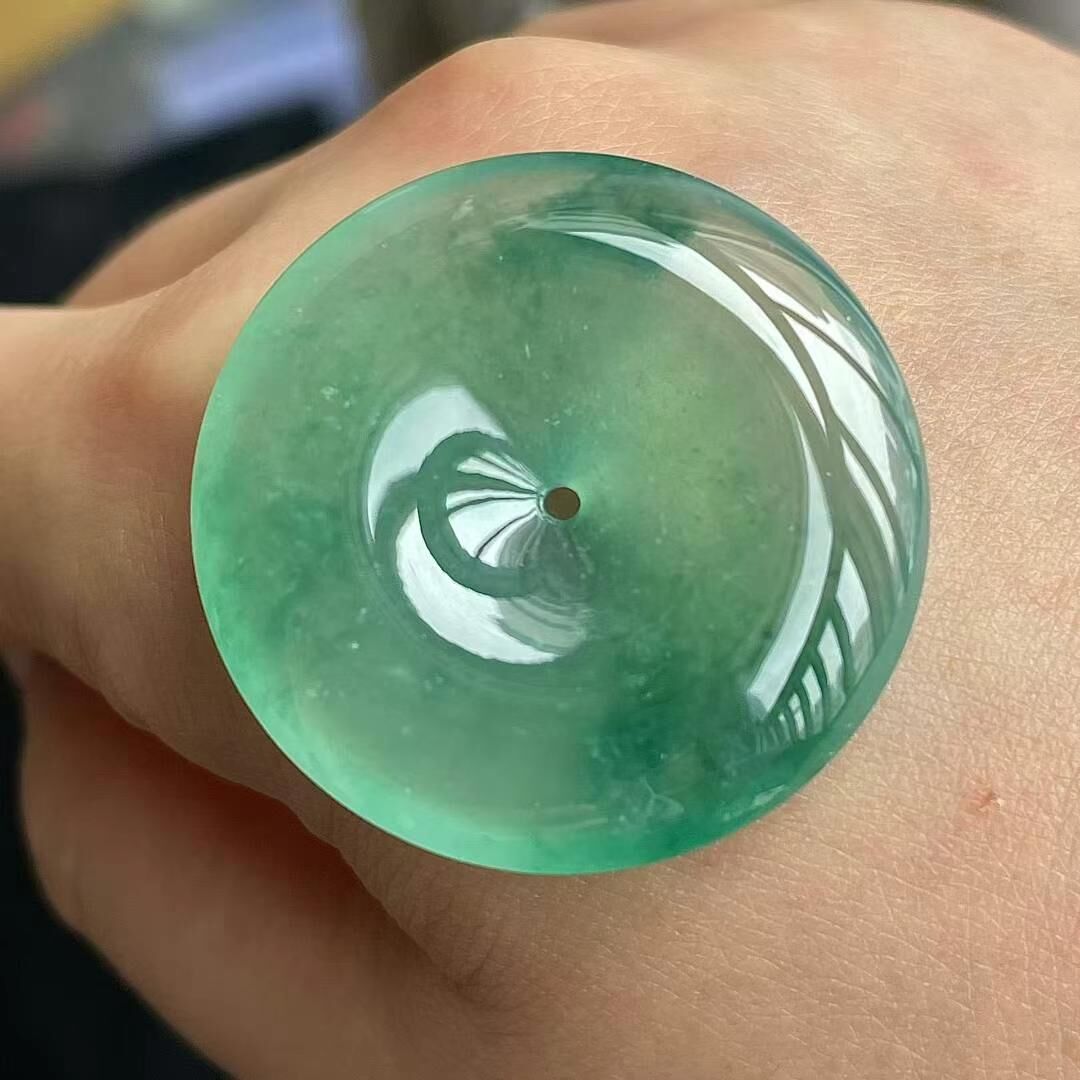 • 翡翠冰種飄花平安扣吊墜 (31.3mm直徑),天然翡翠A玉, 緬甸玉, Jade, Jadeite