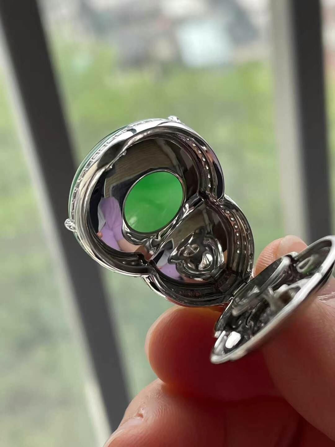 天然翡翠A玉,緬料,色辣水潤,飽滿無裂。