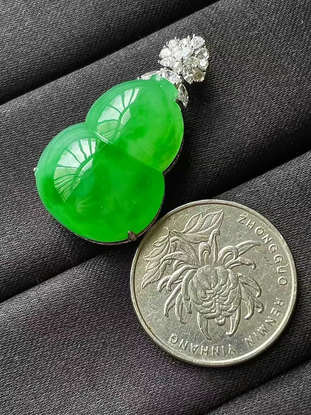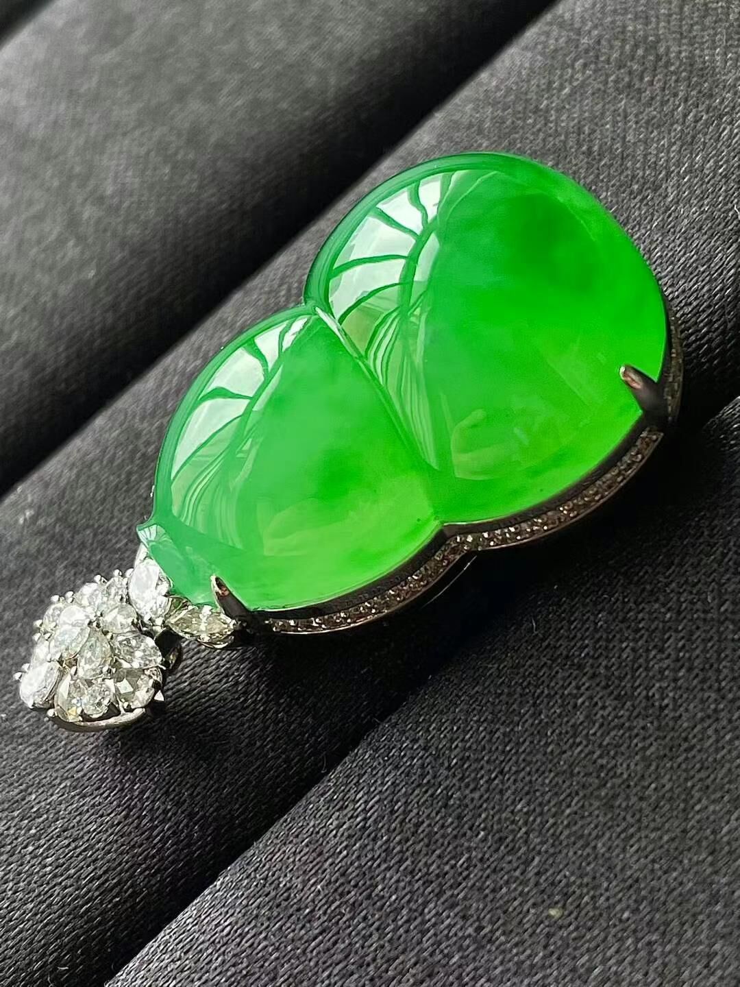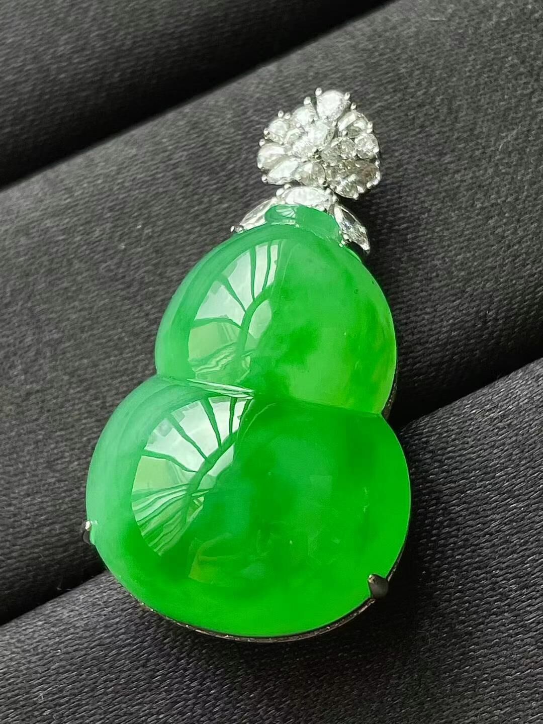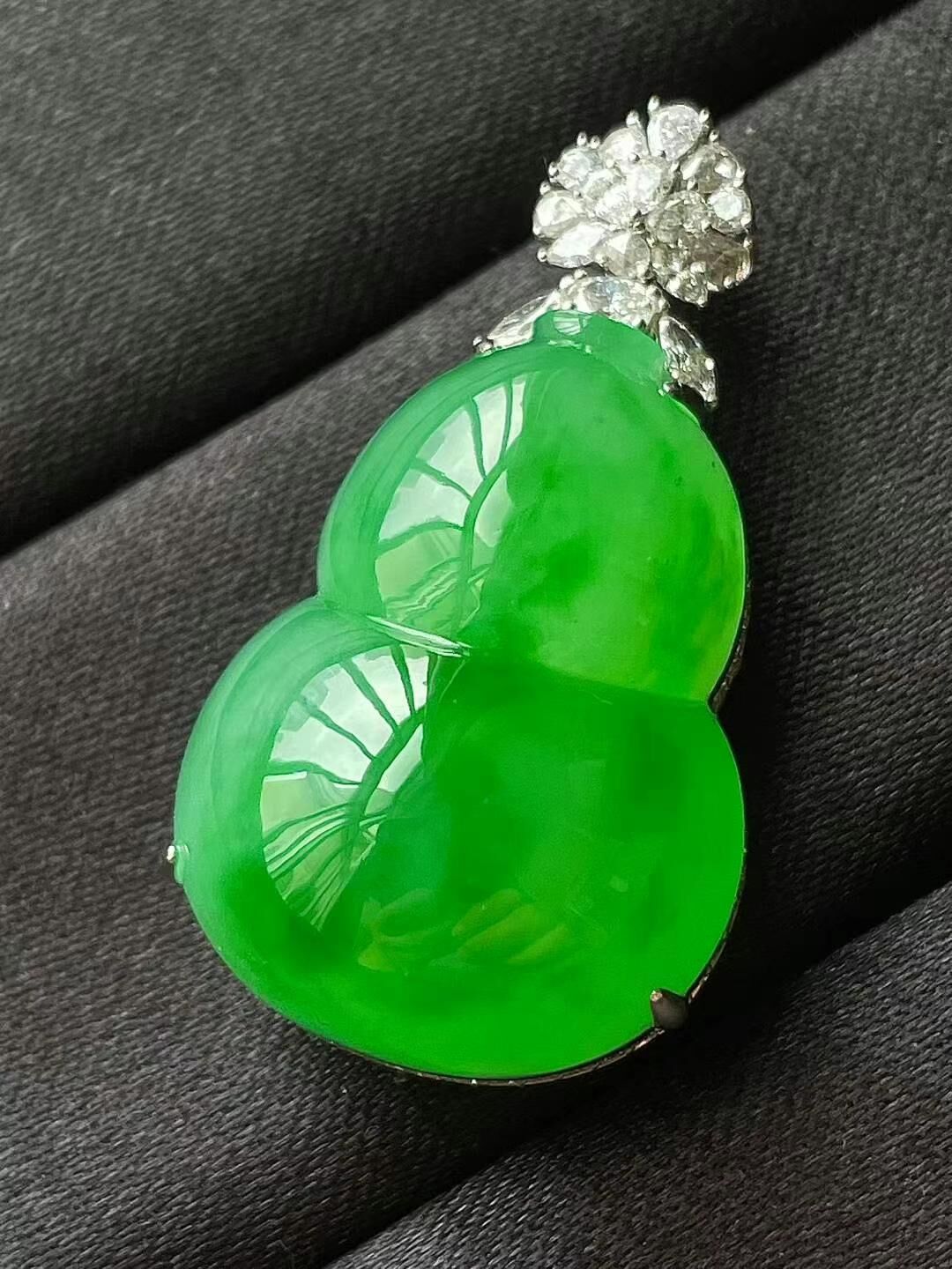 • 翡翠冰陽綠葫蘆吊墜,天然翡翠A玉, 緬甸玉, Jade, Jadeite
