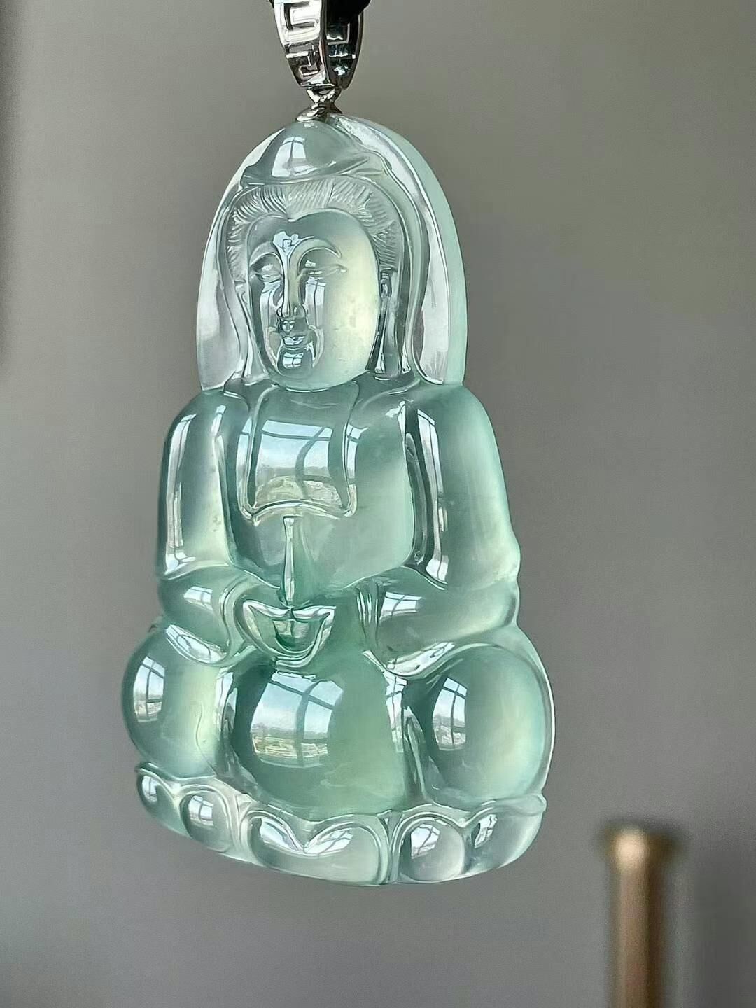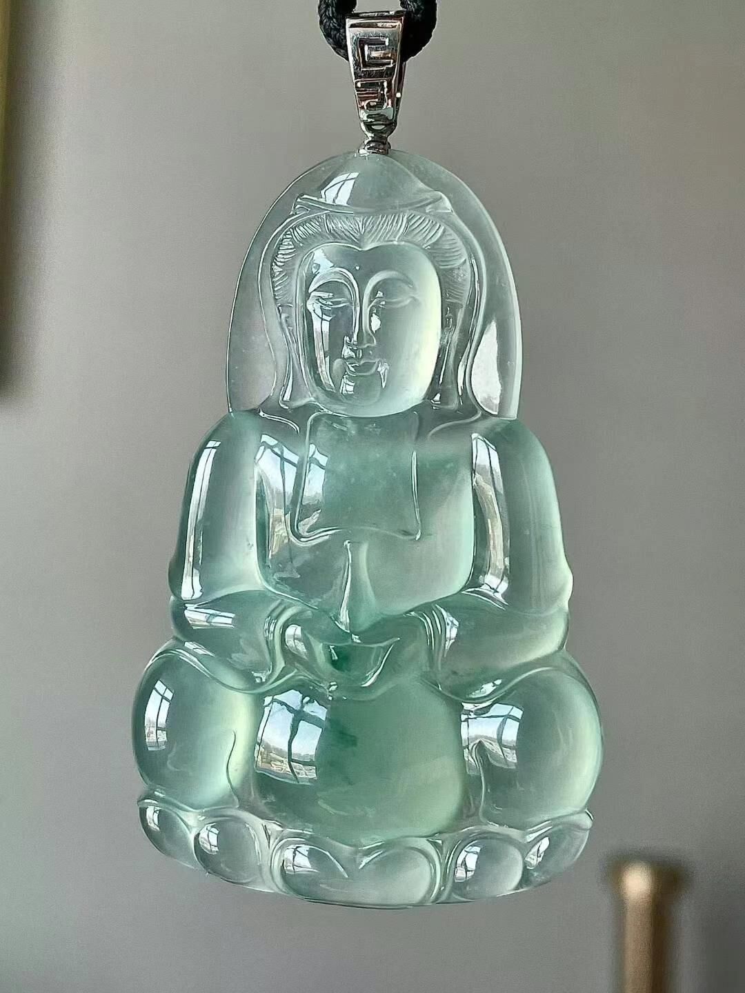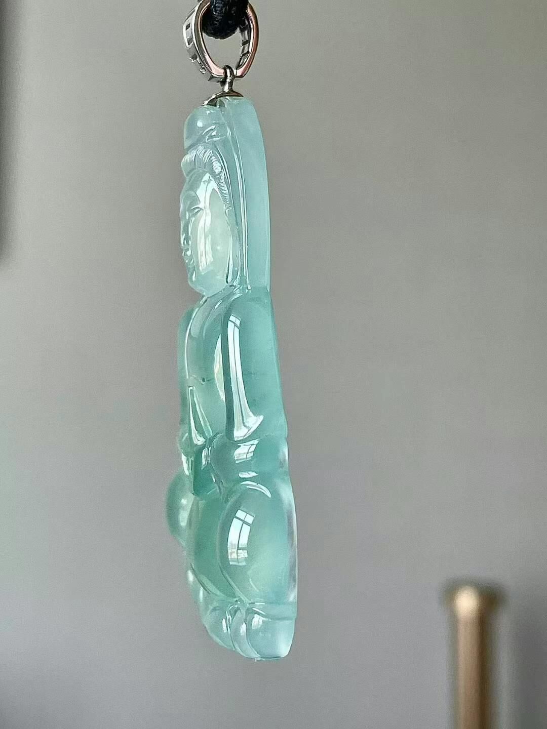 • 翡翠高冰飄花觀音,天然翡翠A玉, 緬甸玉, Jade, Jadeite