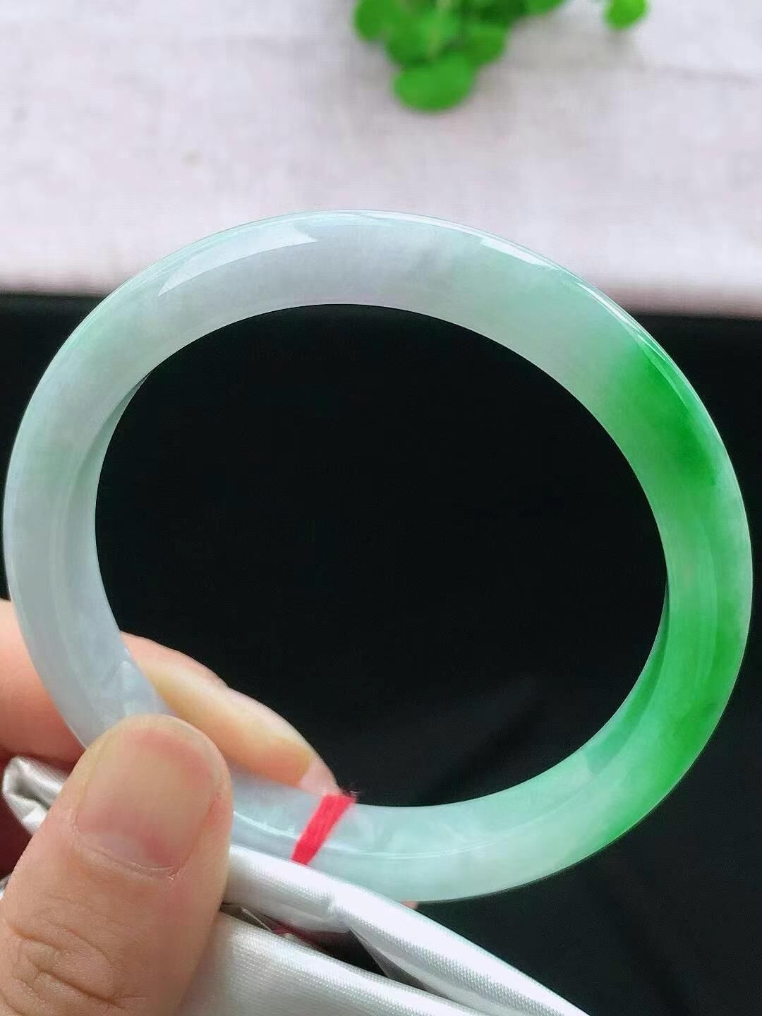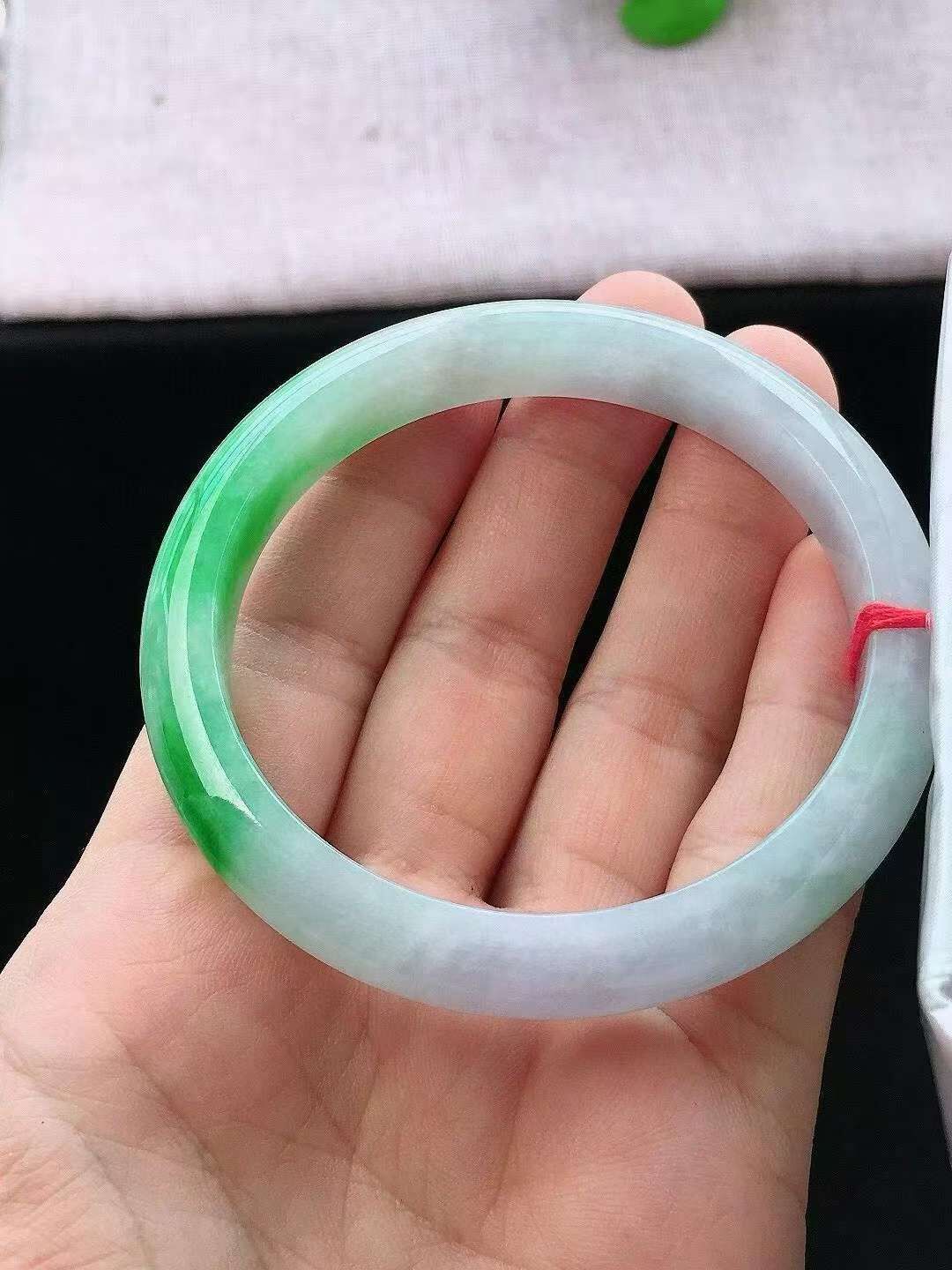 • 冰飄綠翡翠正圈手鐲,天然翡翠A玉, 緬甸玉, Jade, Jadeite