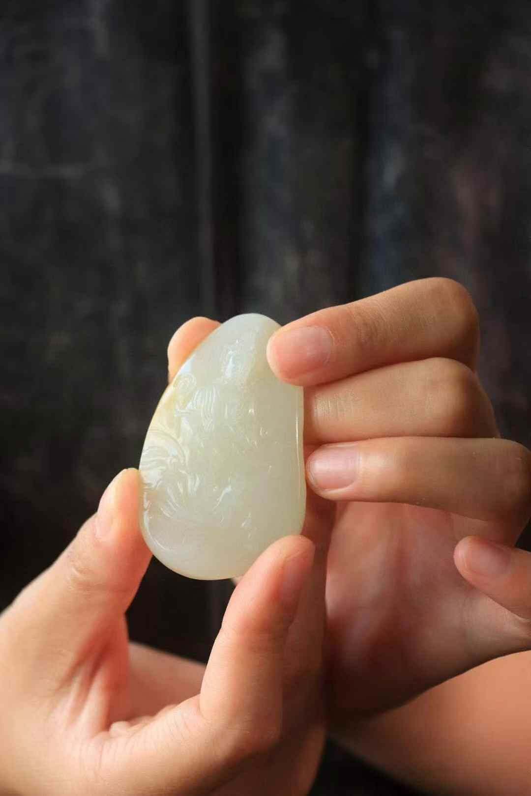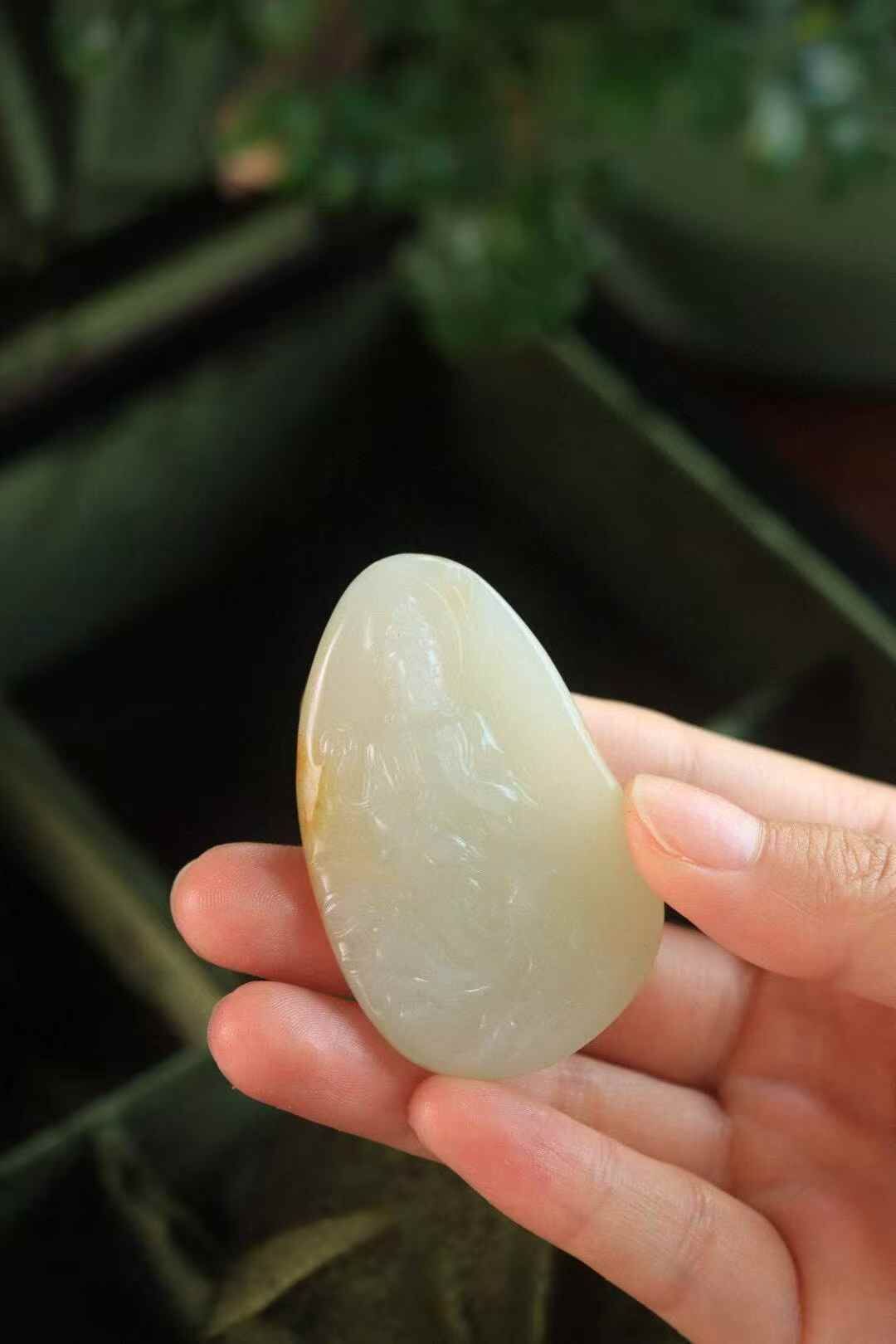 • 和田玉籽料觀音引鳳,天然和田玉軟玉
