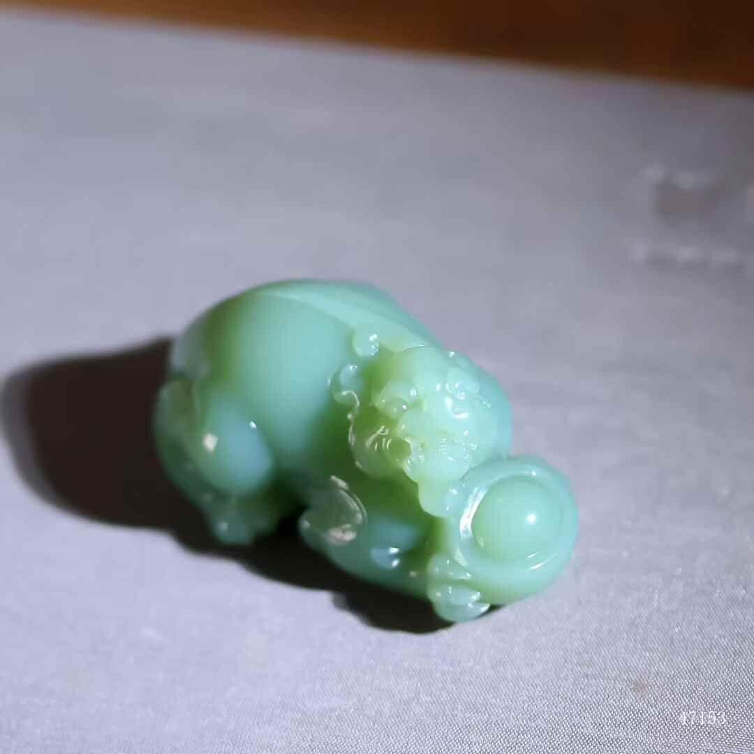 和田玉碧玉粉青瀅瀅若冰河初融,玉質細糯如膏腴初凝。貔貅俯臥攬雲窟,爪捧元寶聚天祿,肌骨圓融處隱現脂光流轉,掌中盤玩時溫潤浸骨,青霧彌散間似有祥瑞暗生。