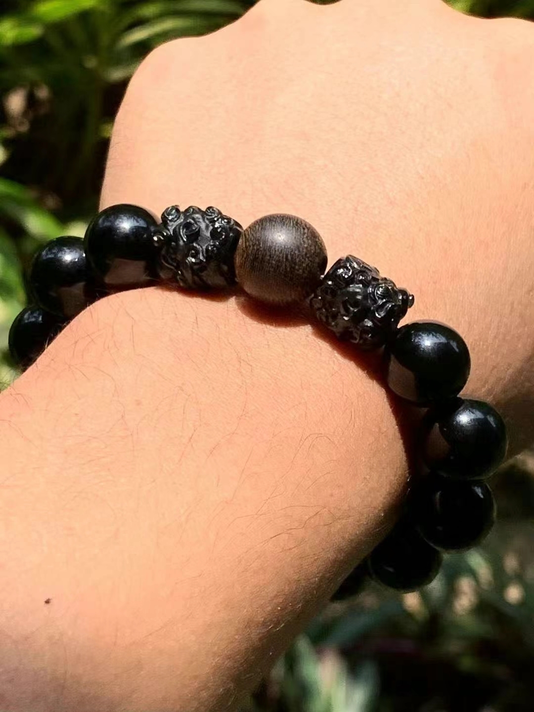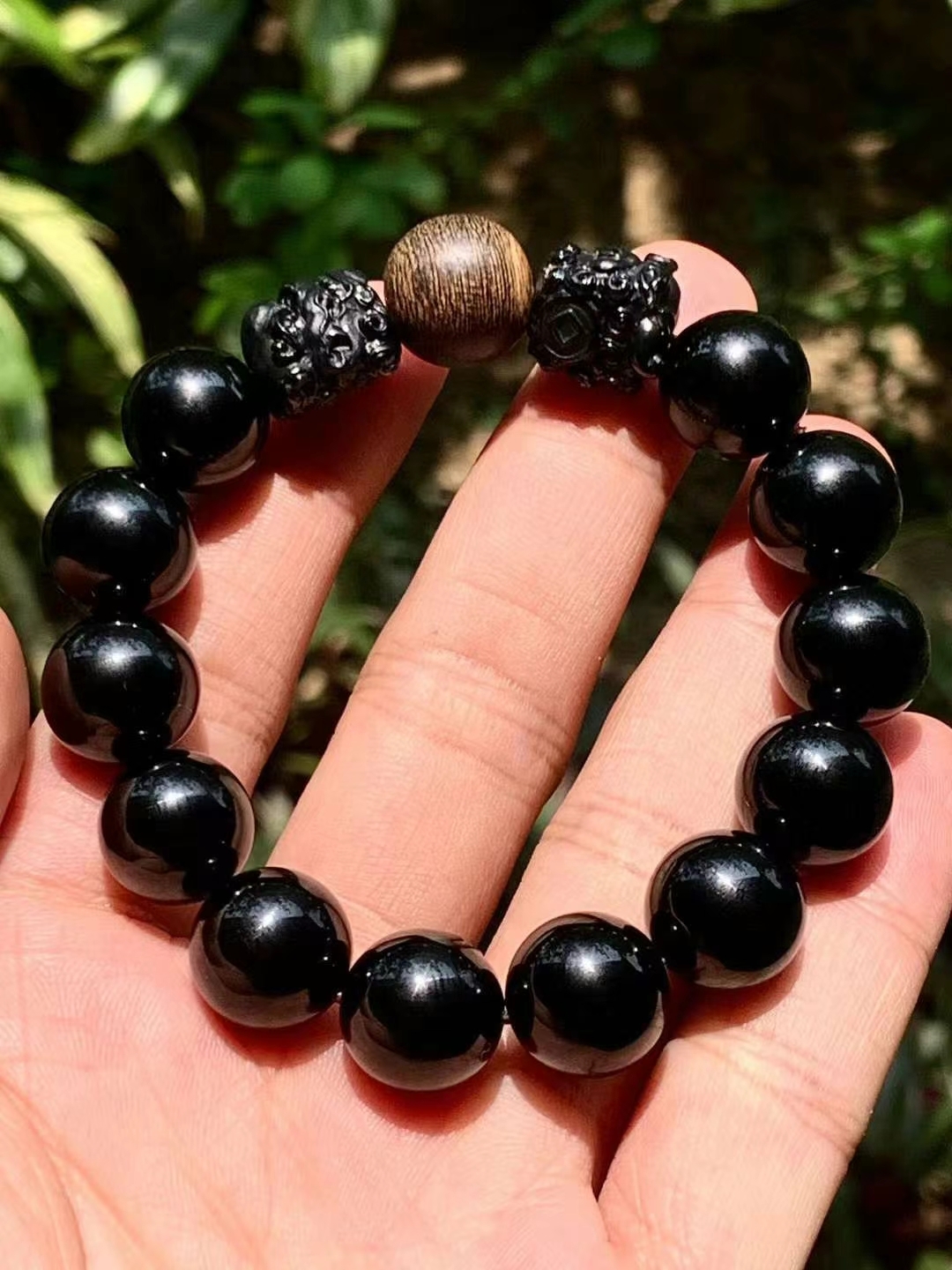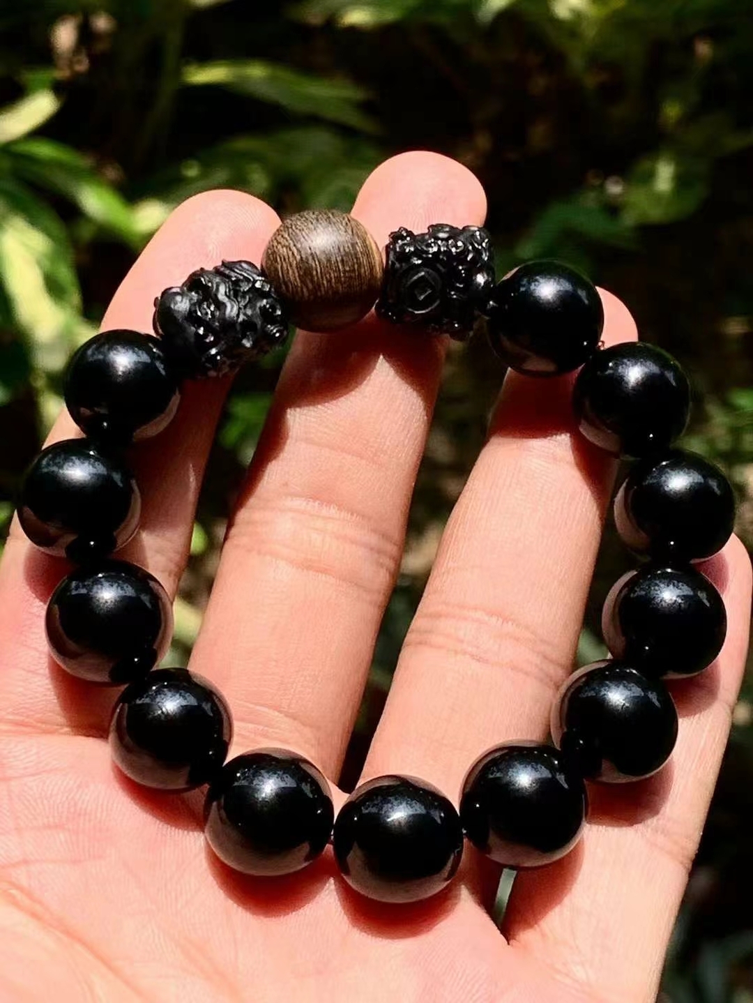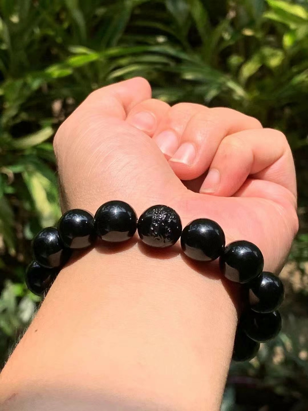 • 墨翠高質手串 (13mm直徑),天然翡翠A玉, 緬甸玉, Jade, Jadeite