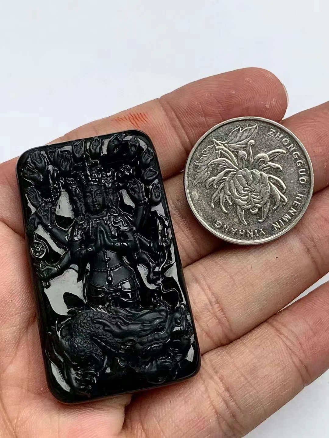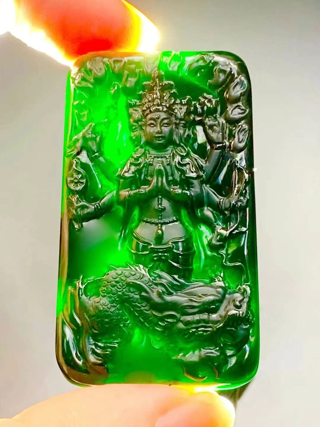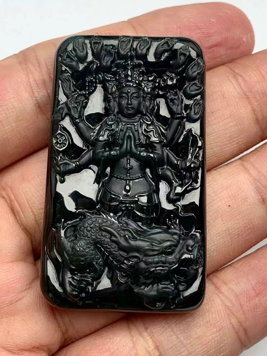 • 墨翠護龍千手觀音,天然翡翠A玉, 緬甸玉, Jade, Jadeite