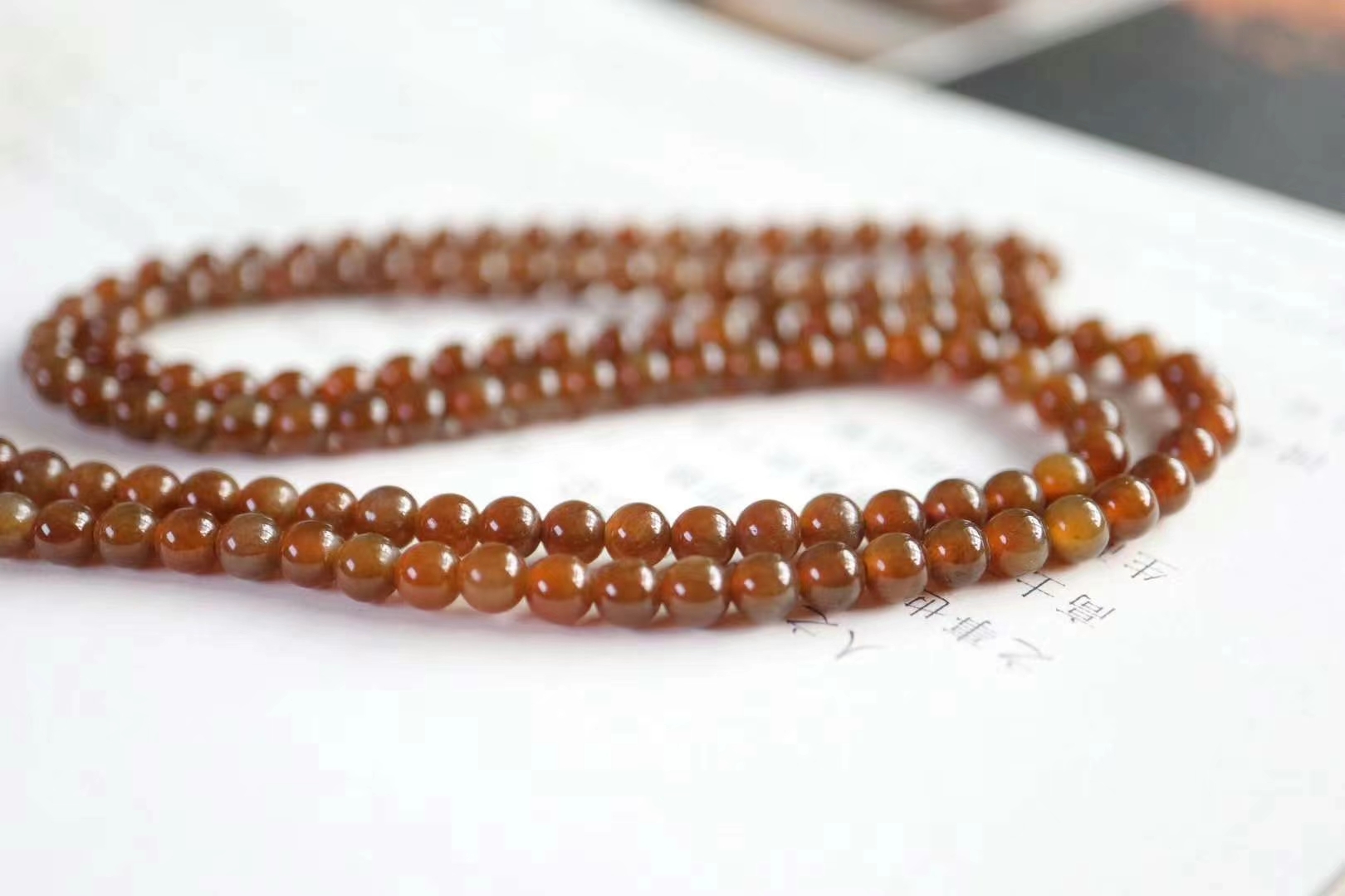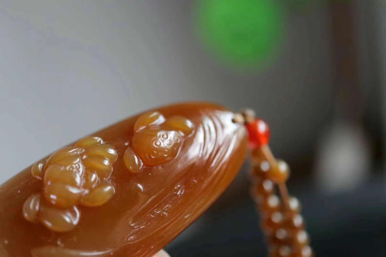 「芙蓮一池淡香,魚兒漫塘愉歡。」收藏級,和田玉新疆且末糖白料雕花吊墜,紅糖白肉,搭配糖玉108顆珠串,精雕盛開的蓮花和遊動的魚兒,寓意連年有餘,生活富足美滿。