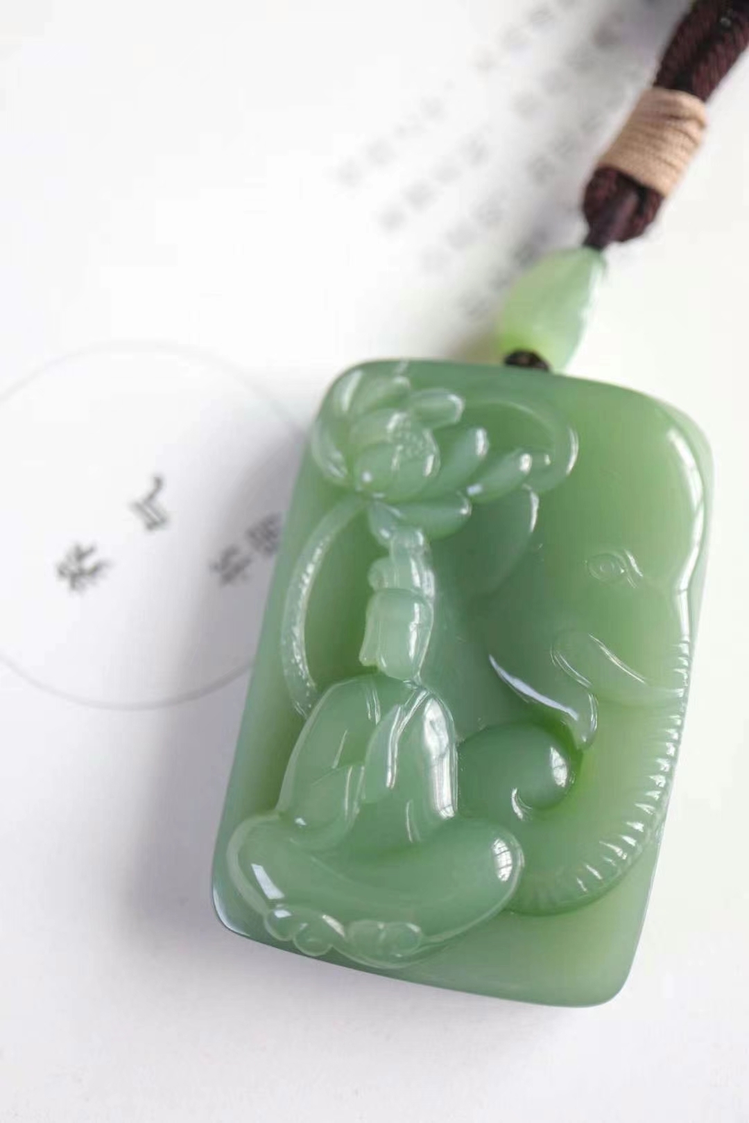 • 和田玉蓮花觀音,天然和田玉軟玉