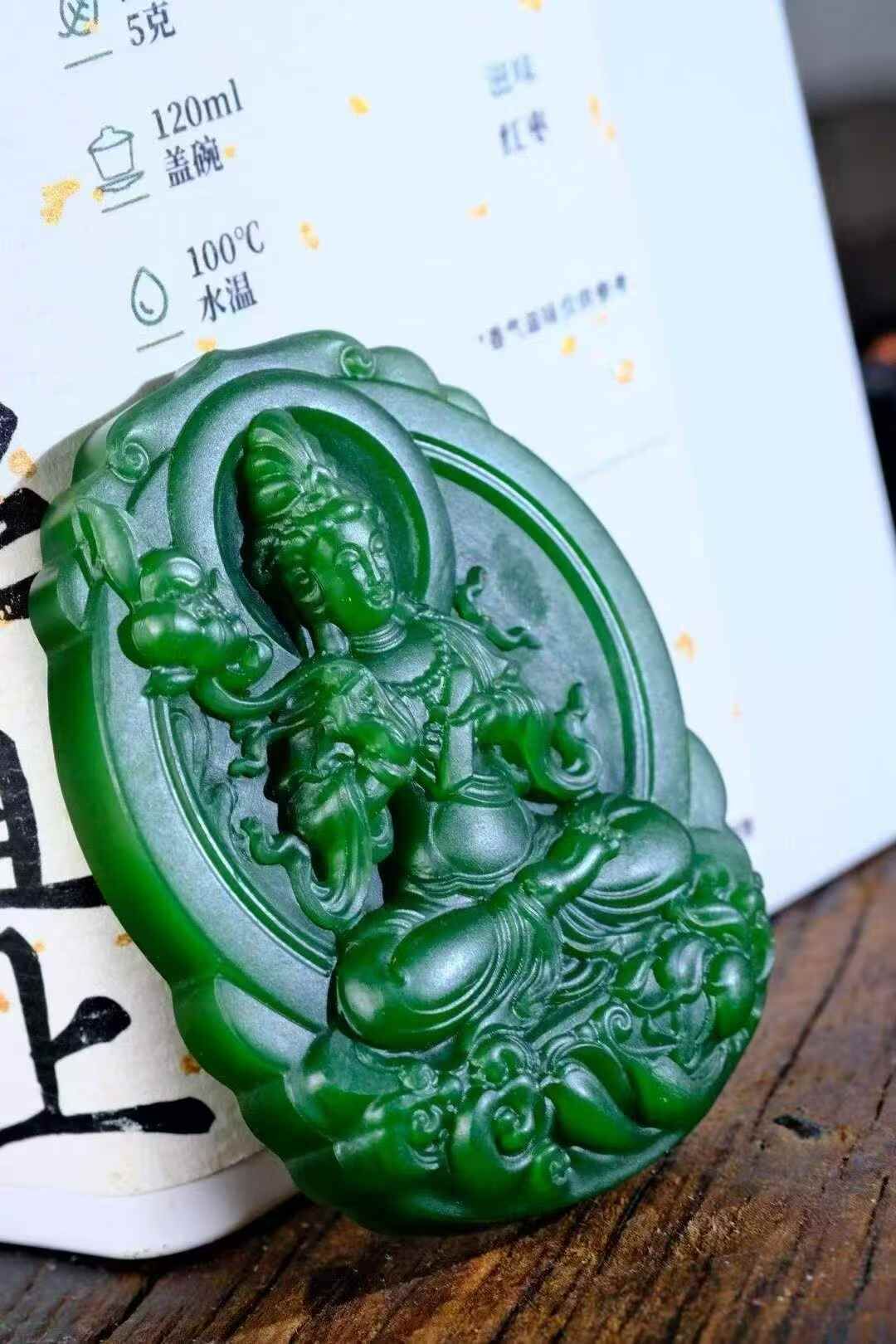 和田玉碧玉七號坑老料觀音。所求皆如願,所行化坦途,多喜樂,長安寧!精雕坐蓮觀音,脂細油糯,溫潤而澤意境絕妙,氣韻傳神。