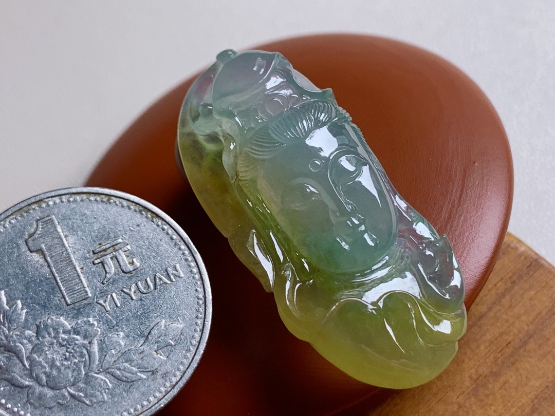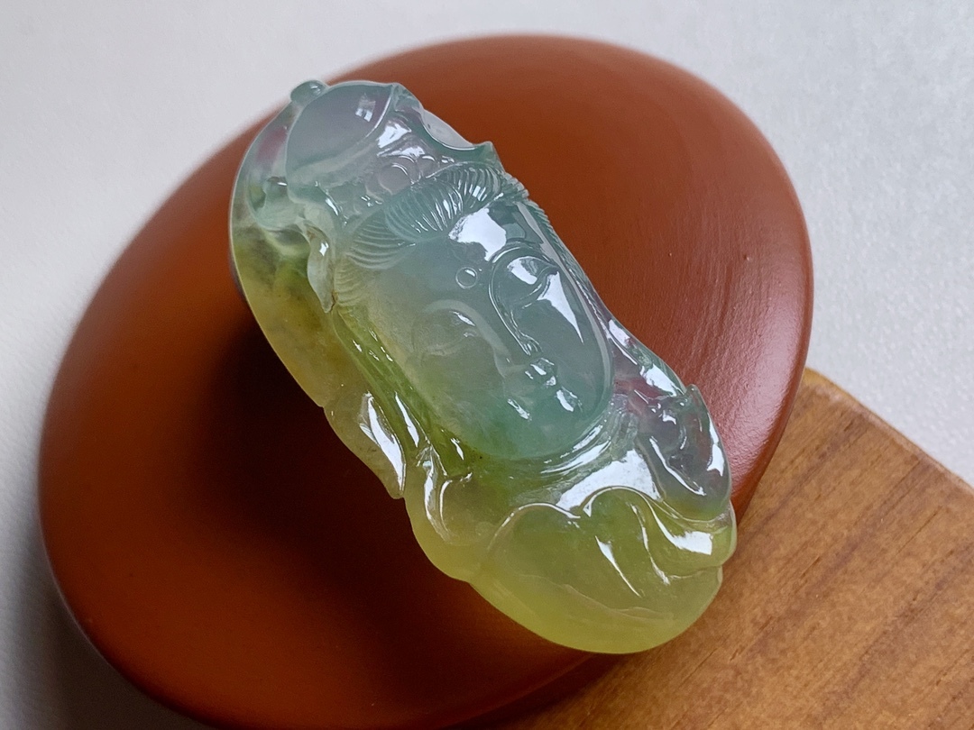 • 翡翠高冰黃翡觀音首相,天然翡翠A玉, 緬甸玉, Jade, Jadeite