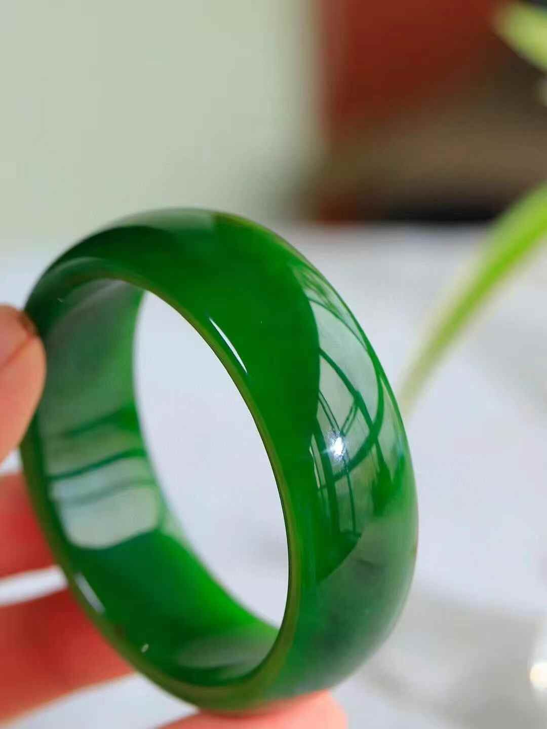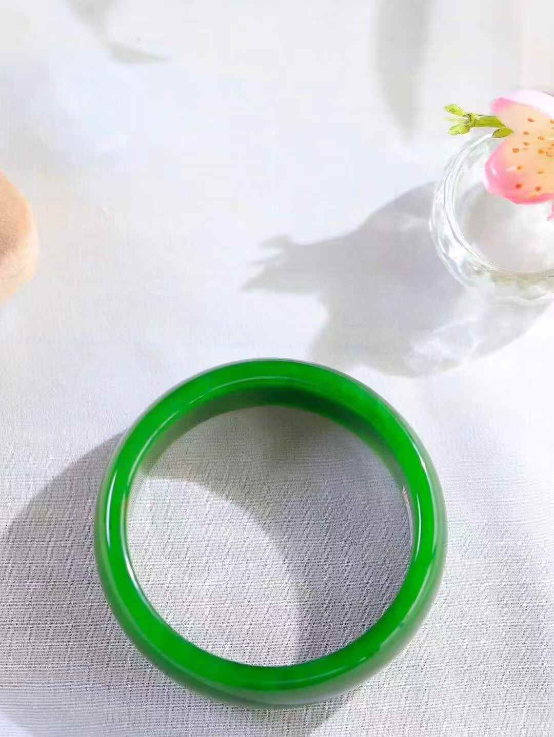 收藏傳家級臻品,和田玉碧玉寬手鐲,玉質極其細膩溫潤,手感舒適,線條流暢,簡約大氣,美自天成,佩戴於腕間,婉約之美,舉手投足間透出那份低調奢華,醉人心扉。