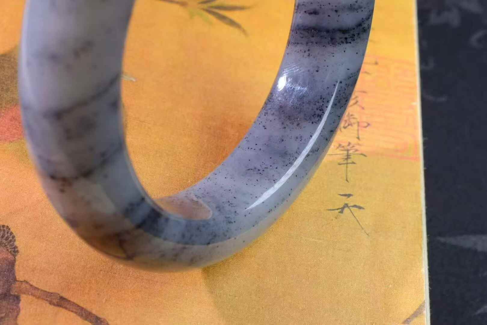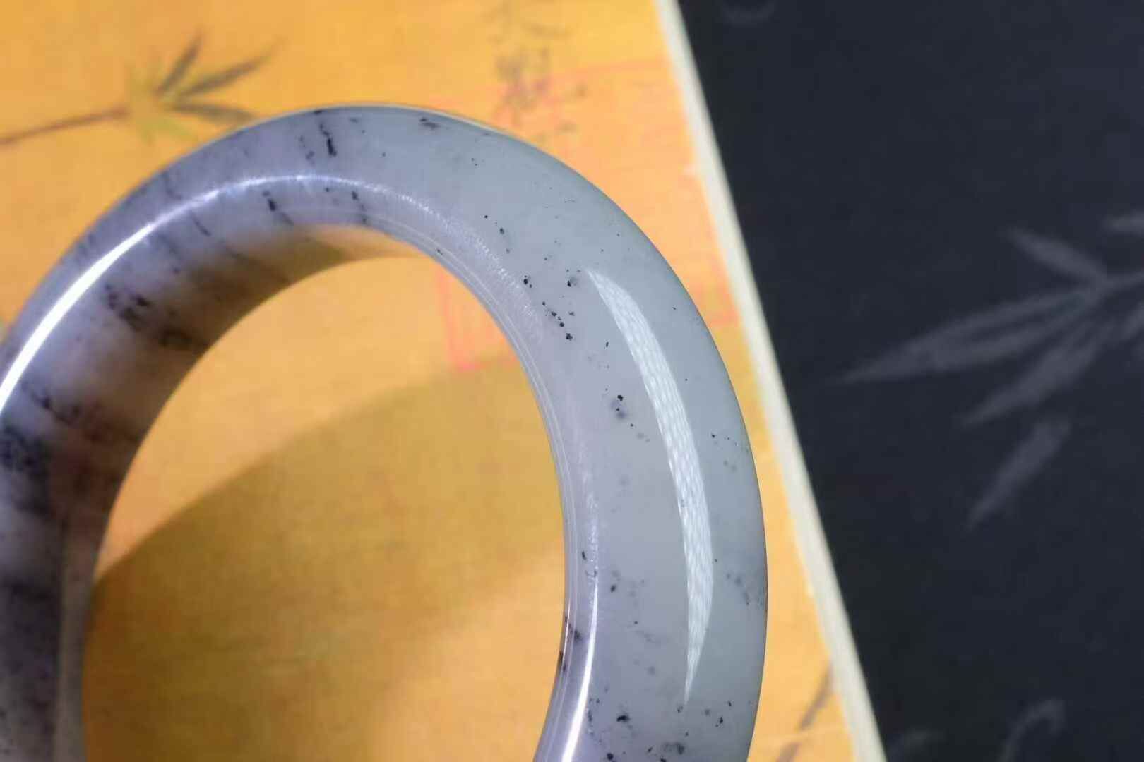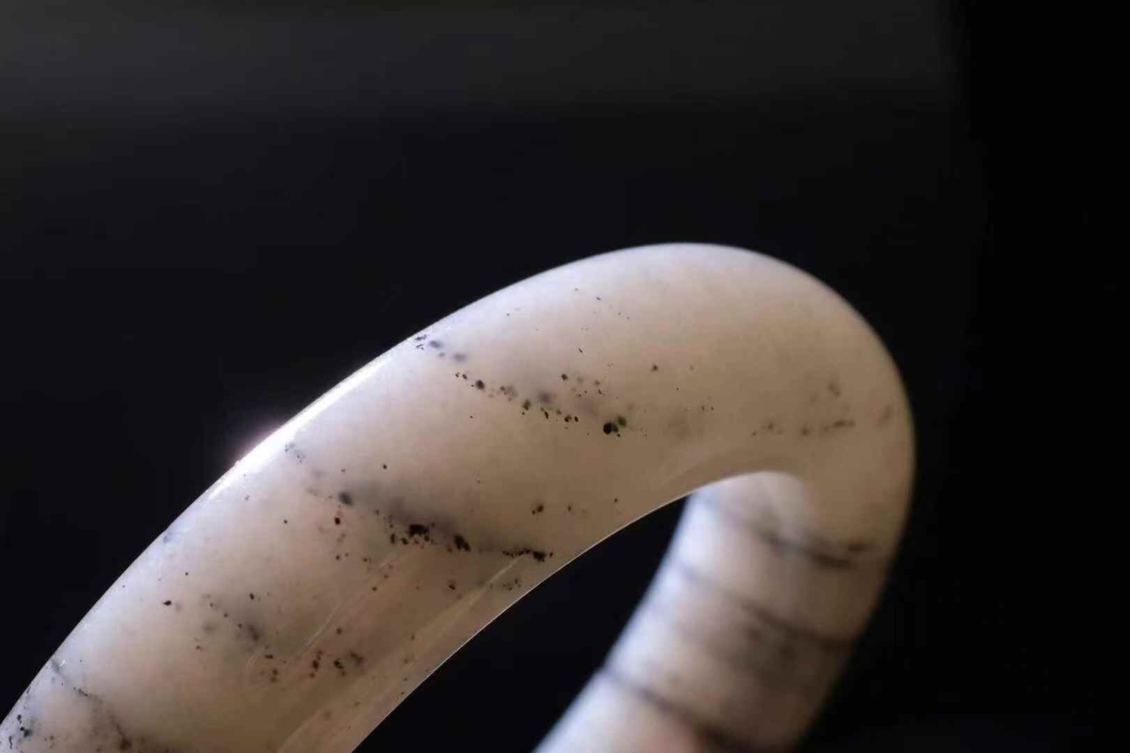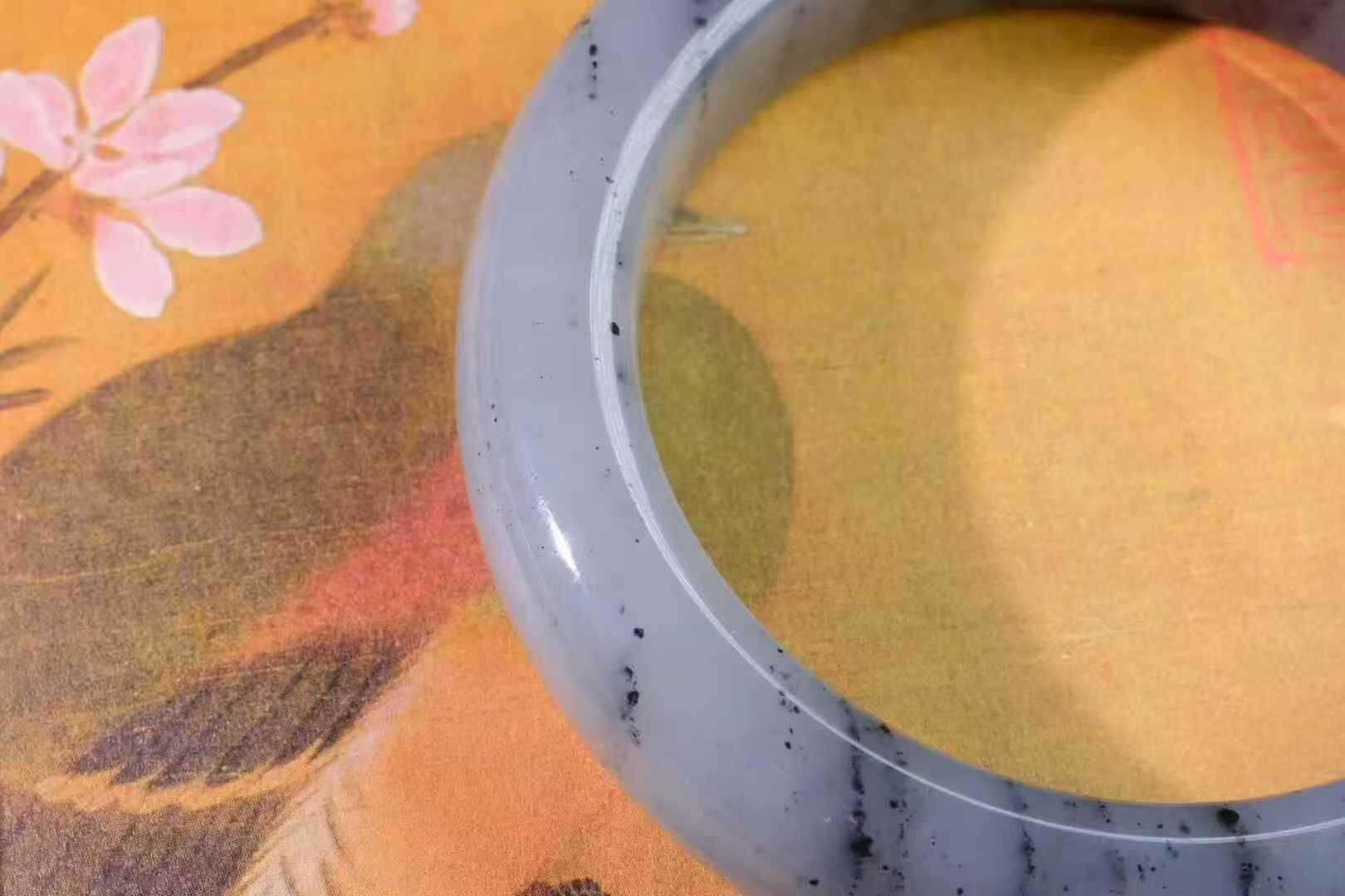 • 和田玉青花寬條詩意手鐲,天然和田玉軟玉
