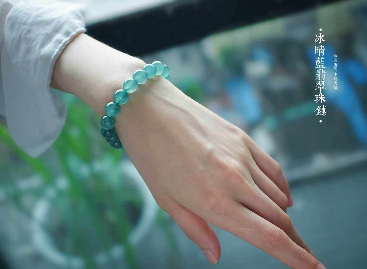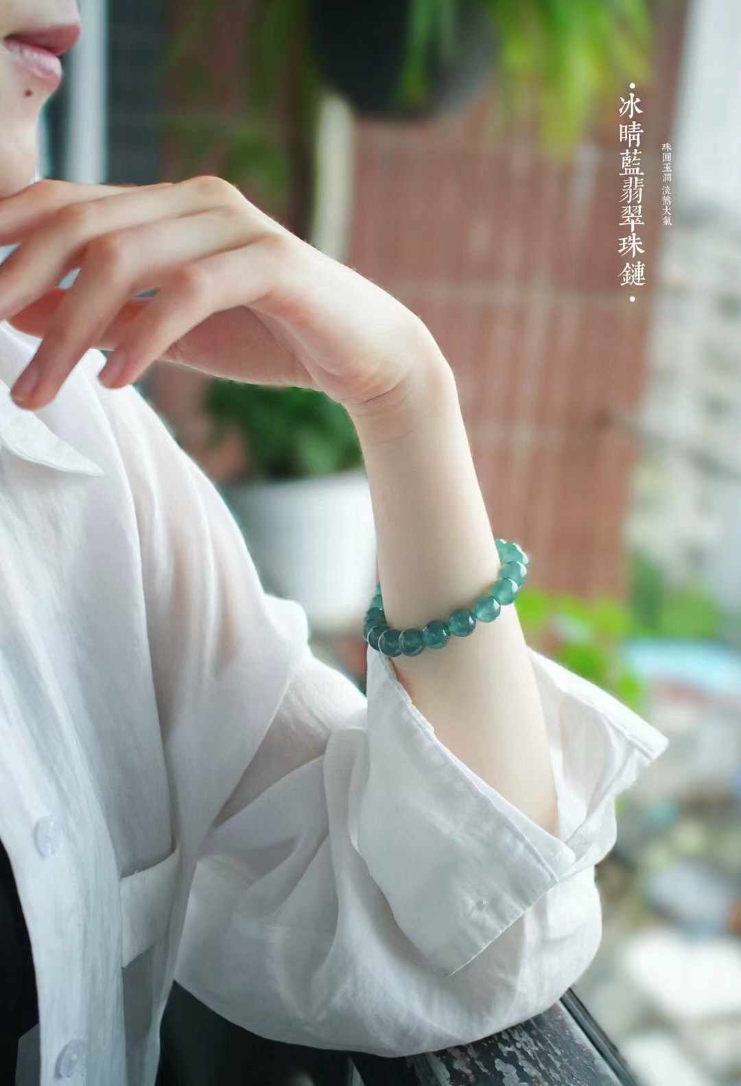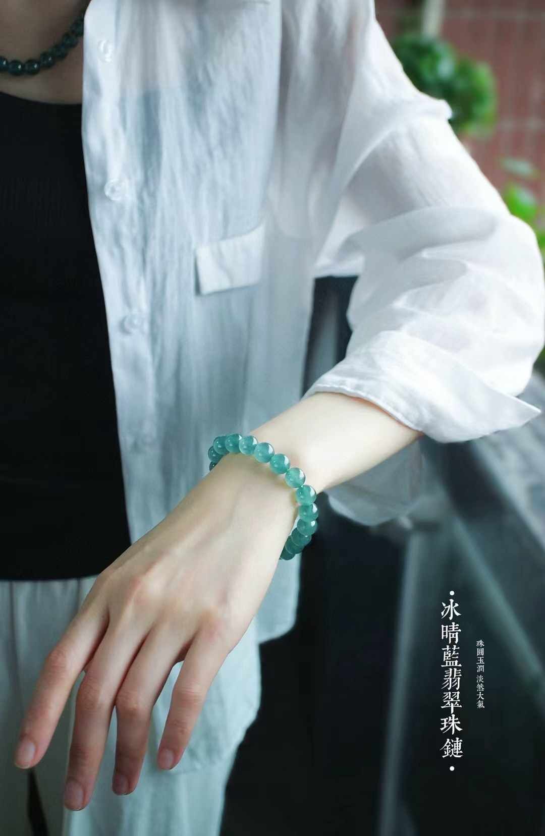 大顆粒超級難得這個種色品種的,淡淡冰藍水,顏色雅緻高貴,種質冰透,水頭極佳,品質都很好,適合各種年齡,素珠簡而純粹。這是我們精選的翡翠原石來做的,從開料到每一顆珠子的打磨精選,每顆珠子的品質都是經得起細細品味。