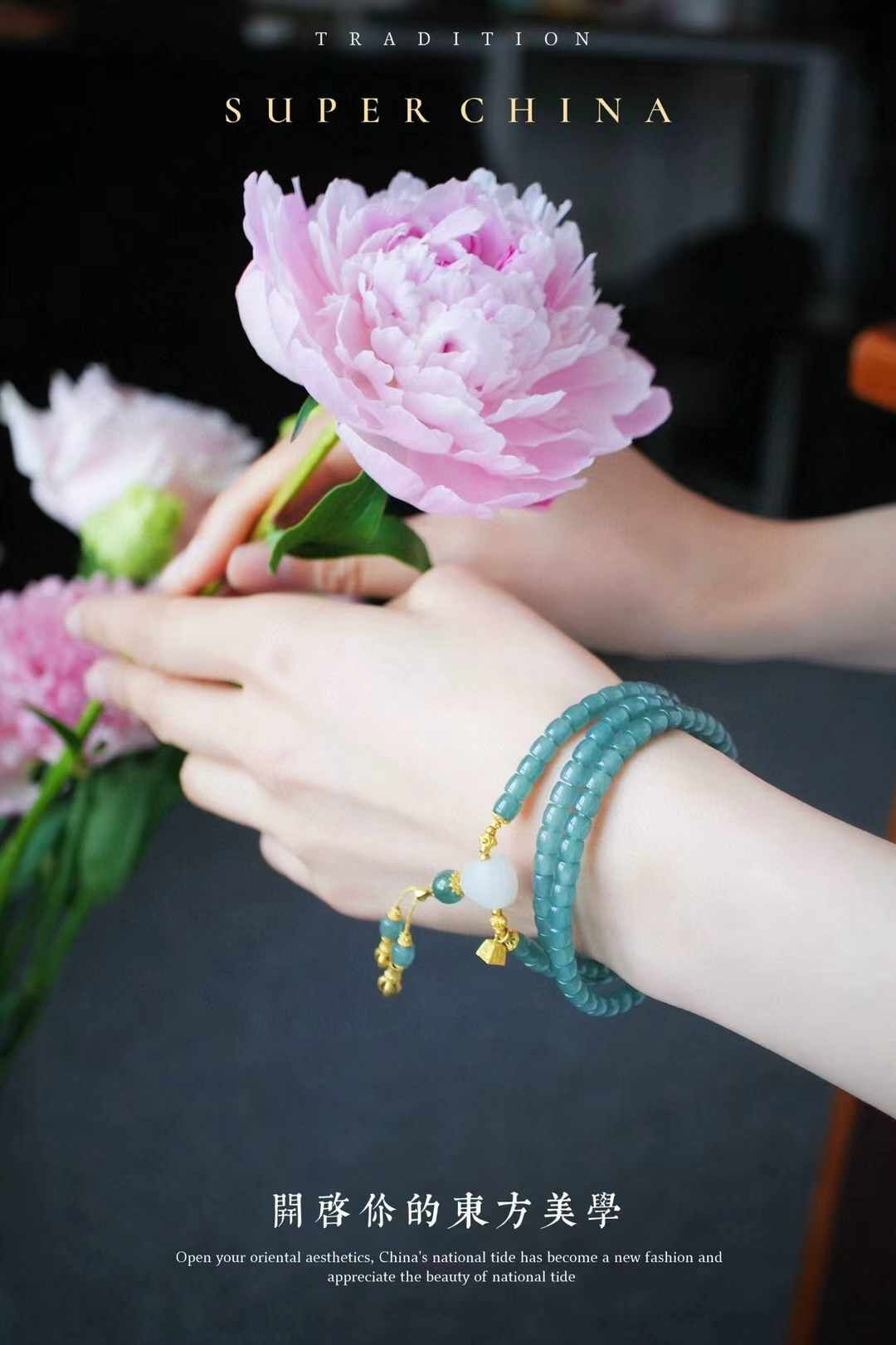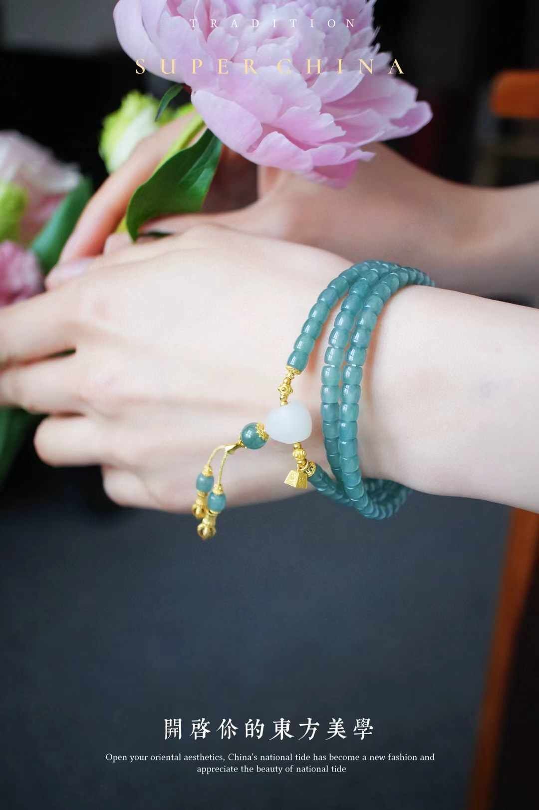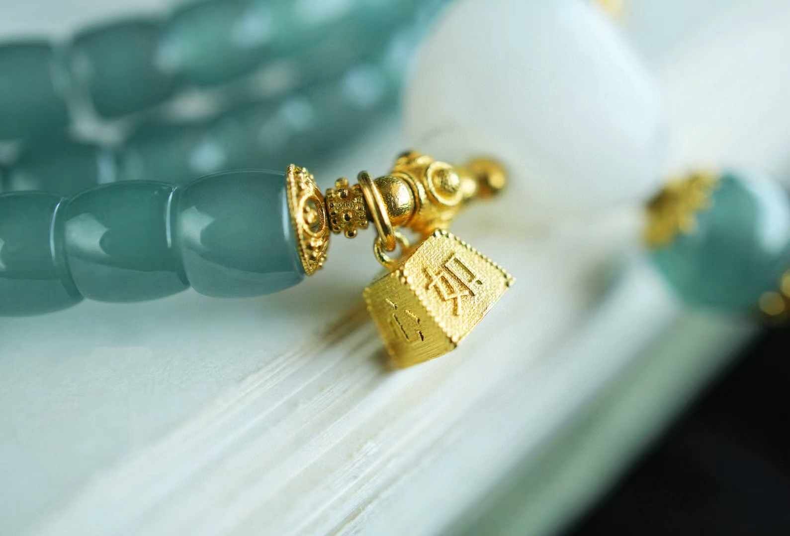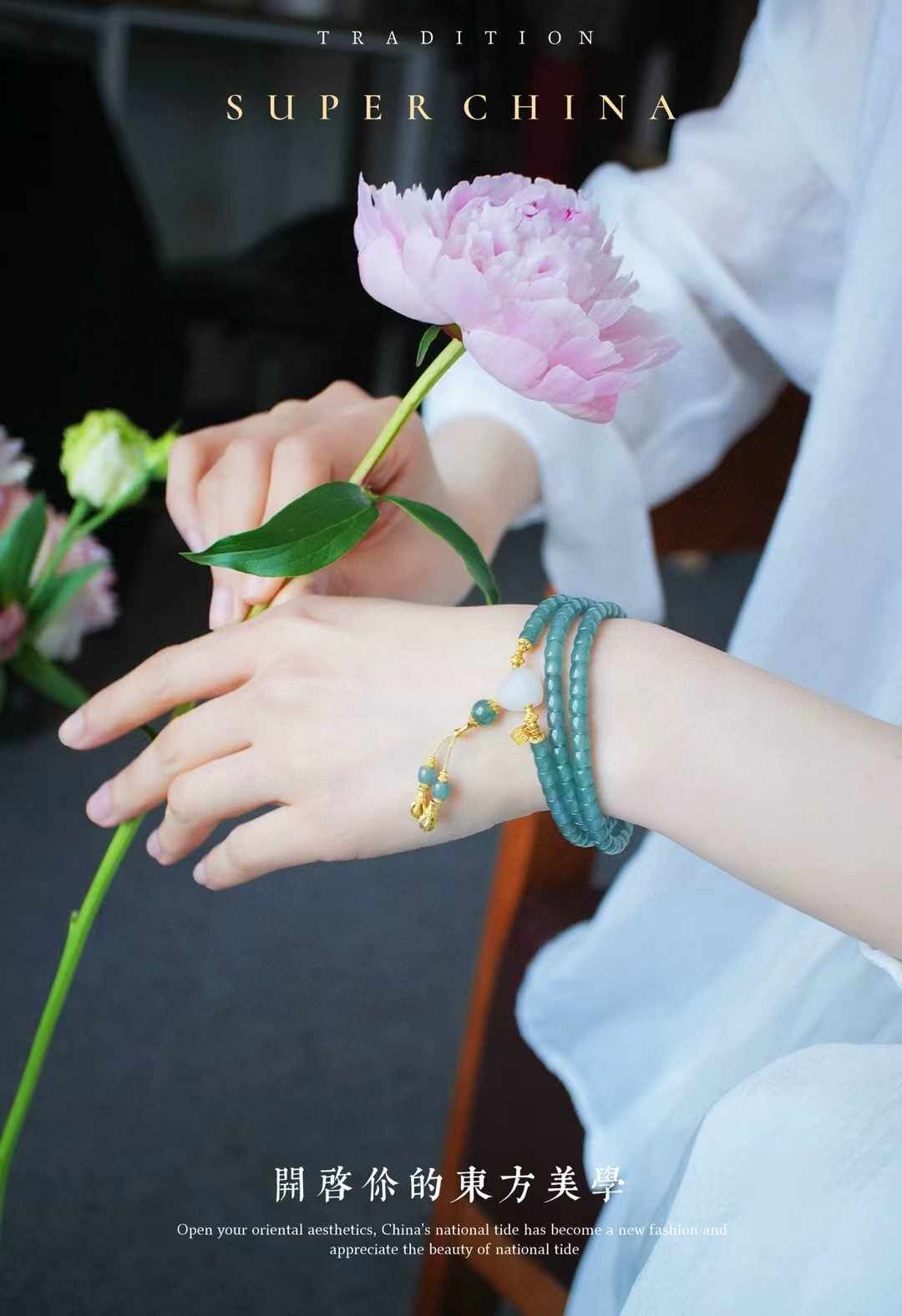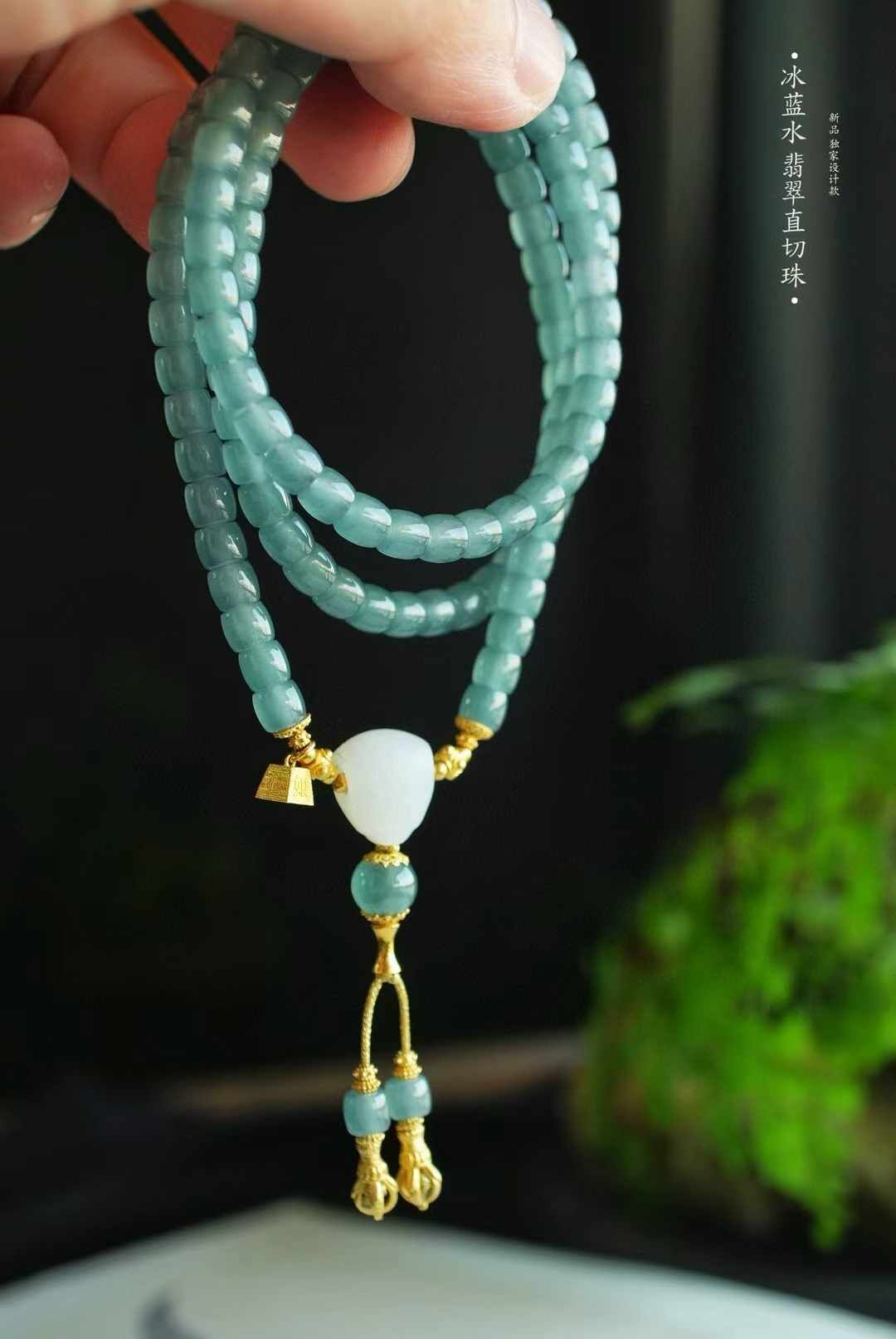 冰冰的,晴水綠底色,水潤瑩淨,底子極通透,乾淨無雜。似清晨露水,一眼過目忘不掉的那種。搭配和田羊脂白玉三通,18K金稱心如意,18K金金剛杵,18K金花托蜻蜓眼等等,精緻清雅,貴而不凡。