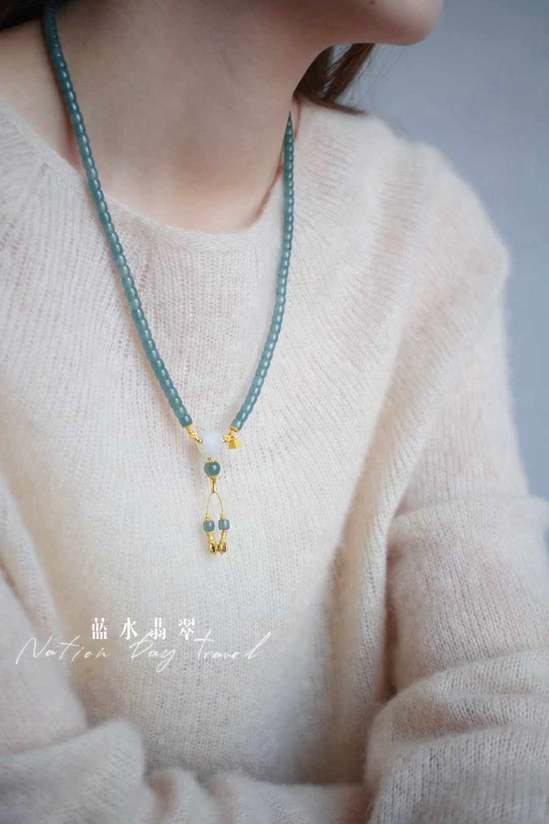 723823 翡翠冰晴綠直切珠三圈手鏈/項鏈