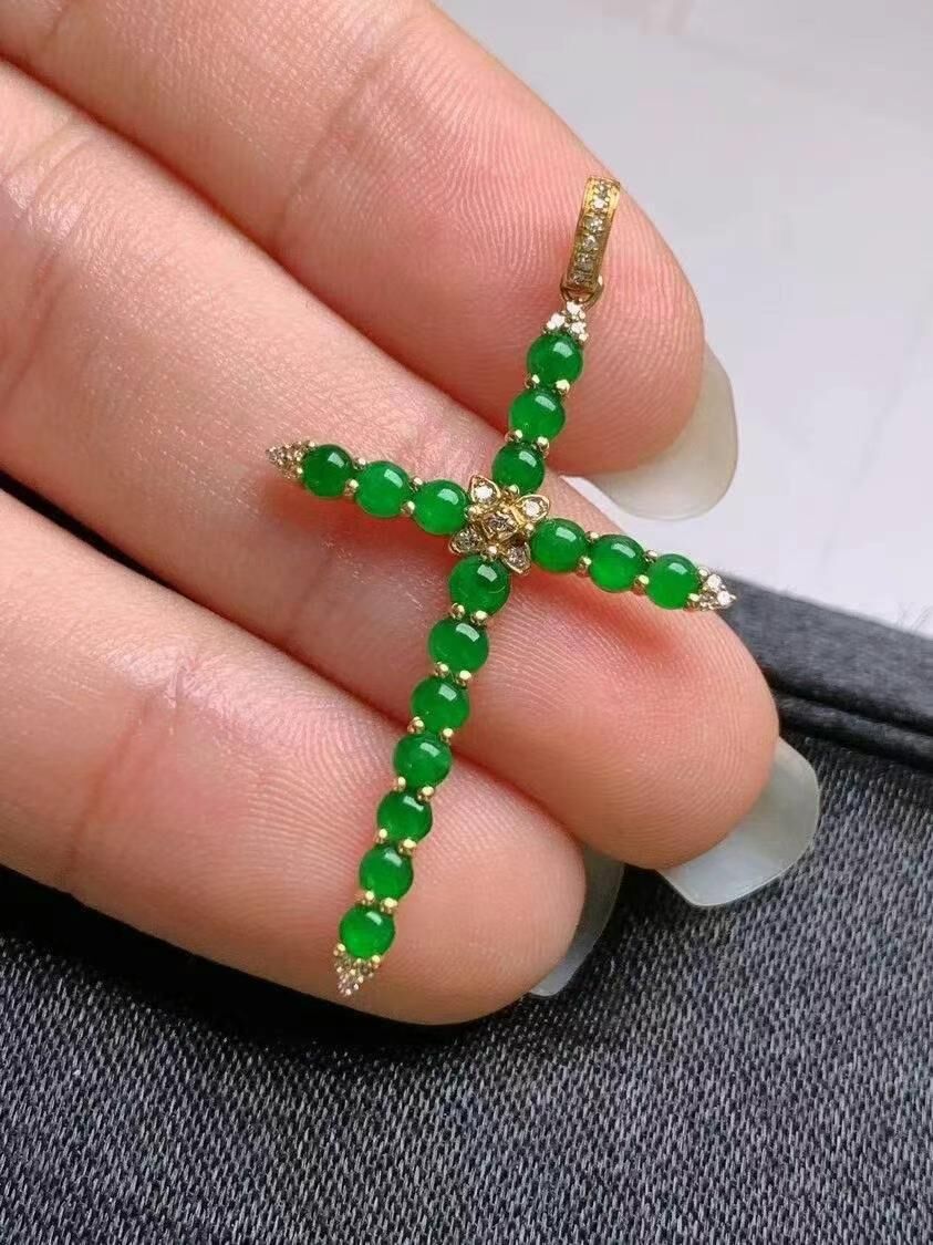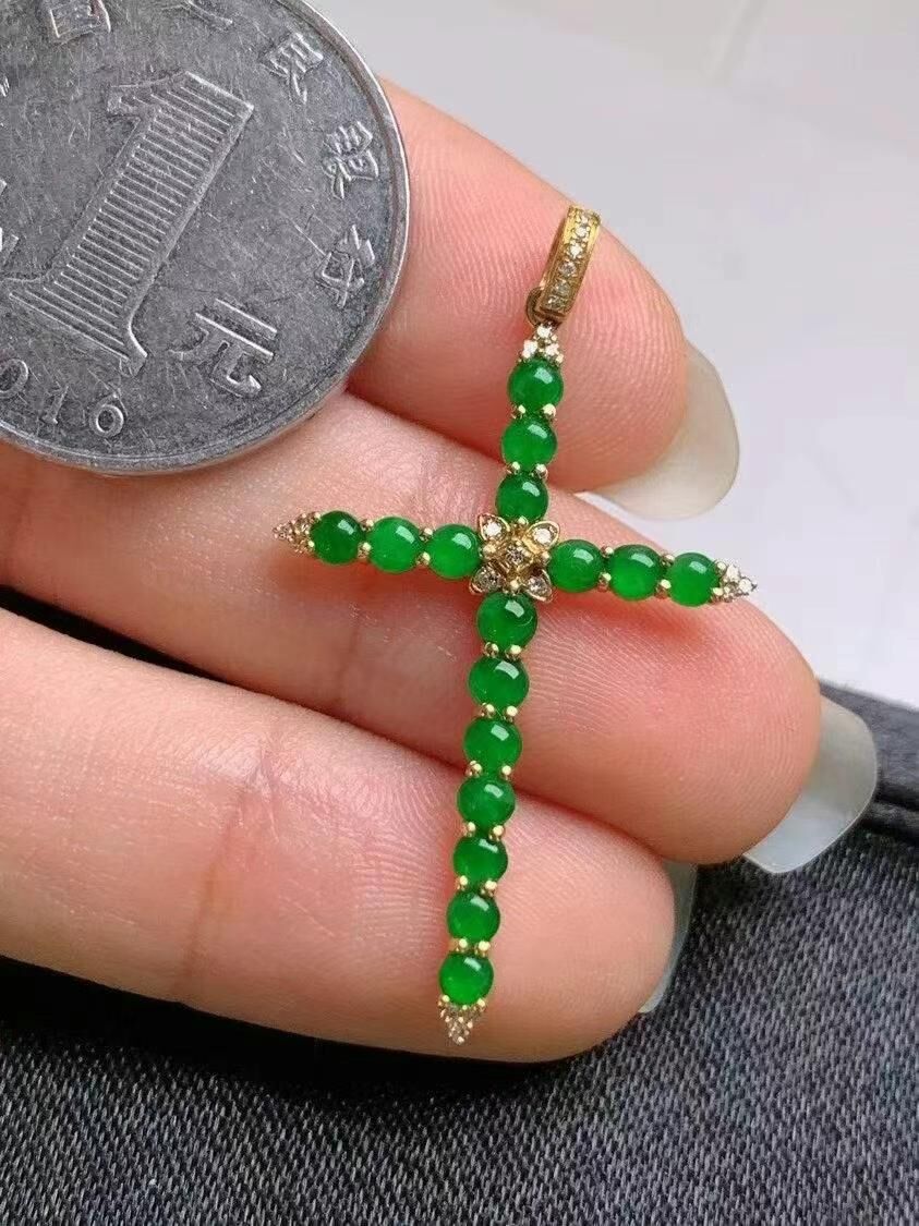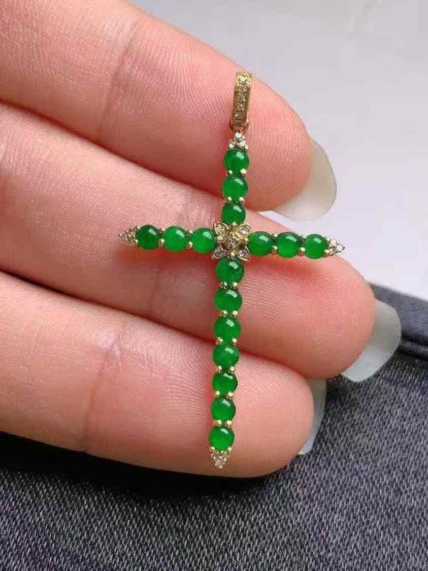 • 翡翠十字架吊墜,天然翡翠A玉, 緬甸玉, Jade, Jadeite
