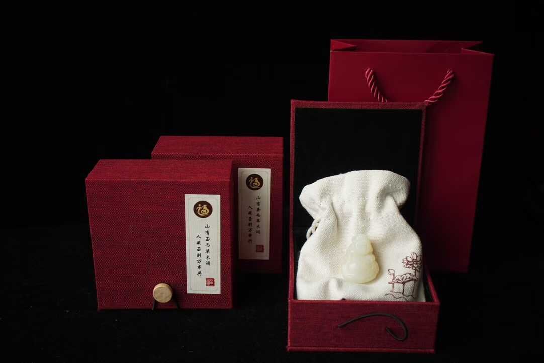 正面蘇工純手工立體精雕一尊彌勒佛,彌勒佛開臉喜氣,福耳垂肩,形態憨態可掬,五官衣褶等細節纖微畢現,線條流暢圓潤,寓意笑口常開,招財納福。